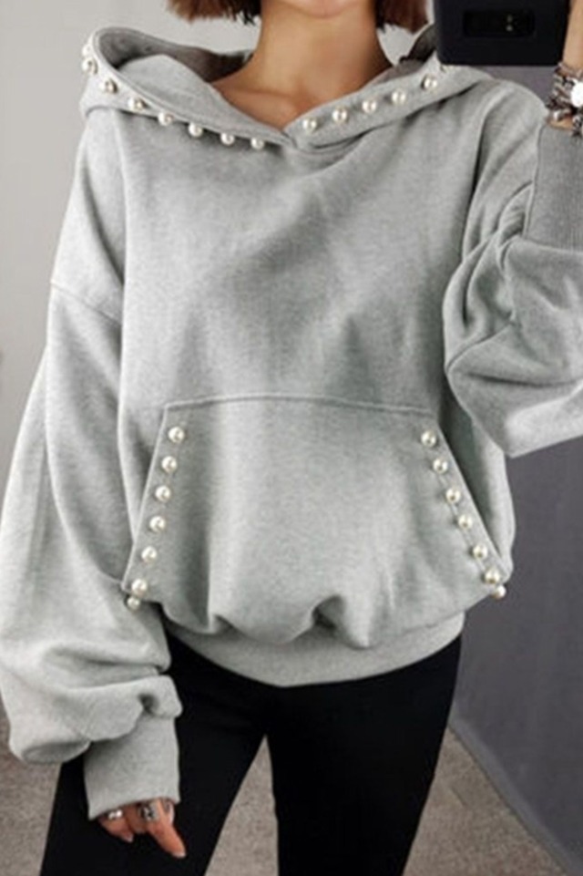 トップス パーカー レギュラー丈 長袖 レギュラー袖 ラウンドネック ストレート フード付き ポケット 綿 コットン ビーズ 可愛い きれいめ カジュアル お洒落 ラフ キュート ルーズ とろみ感 高級感 秋 冬 誕生日 クリスマス バレンタイン 10代 20代 30代 女性用 ママ OL 通勤 学生 通学 デート お出かけ 休日 アウトドア イベント 旅行 高原 ホテル ガーデン ショッピング ファッション 楽ちん モテ ギフト 定番 安い インスタ映え M L XL 2XL 3XL 黒 グレー