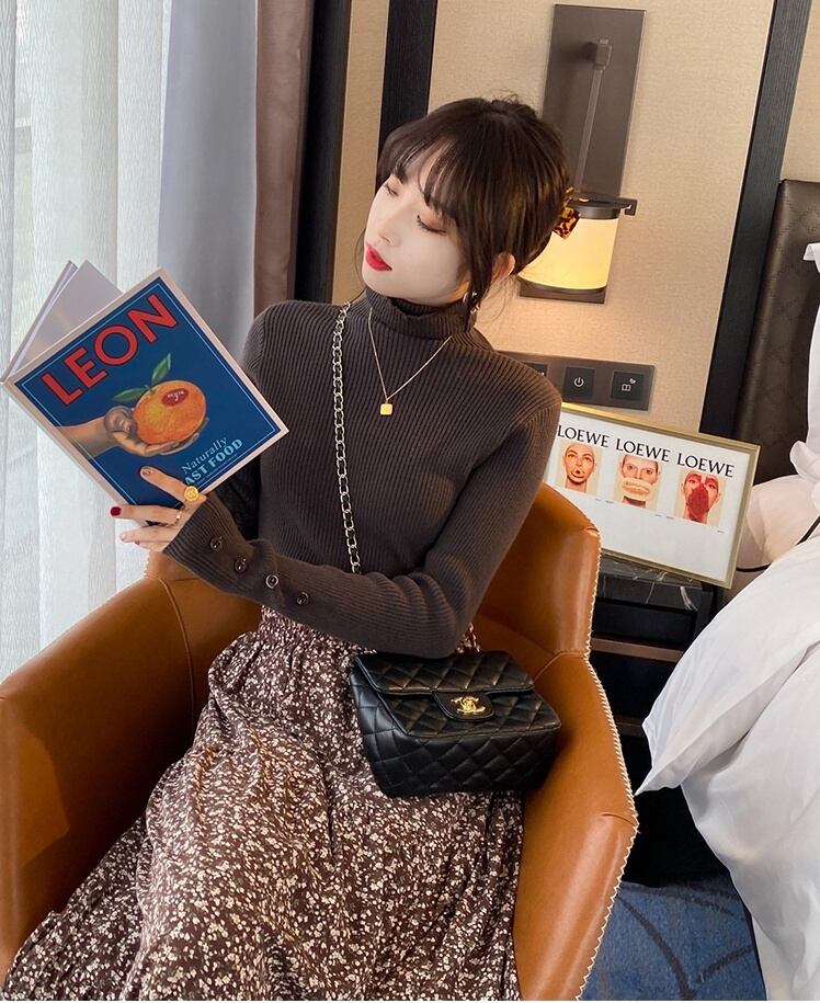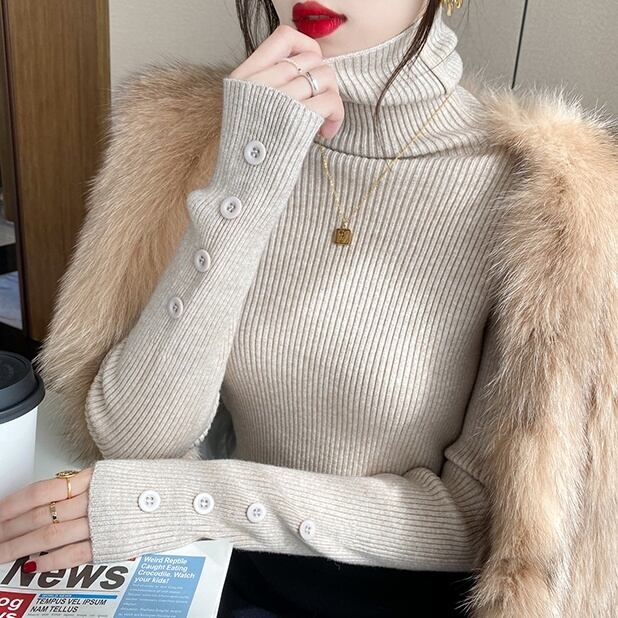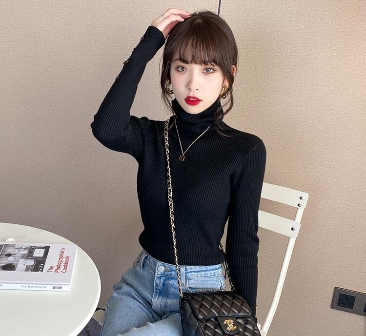 シンプルデザインで着回し力抜群のタートルネックニットトップス。