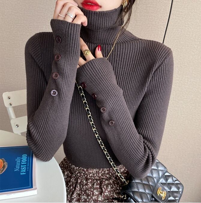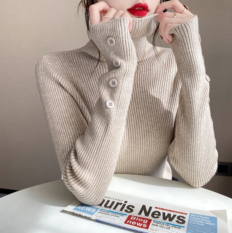 トップス ニットソー プルオーバー インナー ミディアム丈 袖あり 長袖 タートルネック ボタン スリム リブニット 伸縮性 薄手 大人可愛い きれいめ シンプル カジュアル 大人 上品 お洒落 大人女子 こなれ感 ラフ ガーリー エレガント 主役級 抜け感 無地 春 秋 冬 20代 30代 40代 ママ 通勤 学生 通学 デート お出かけ 女子会 休日 旅行 着回し 普段使い 重ね着 オルチャン 暖かい 定番 トレンド 流行 S L XL ベージュ ホワイト ブラック グリーン カーキ ブラウン ブルー