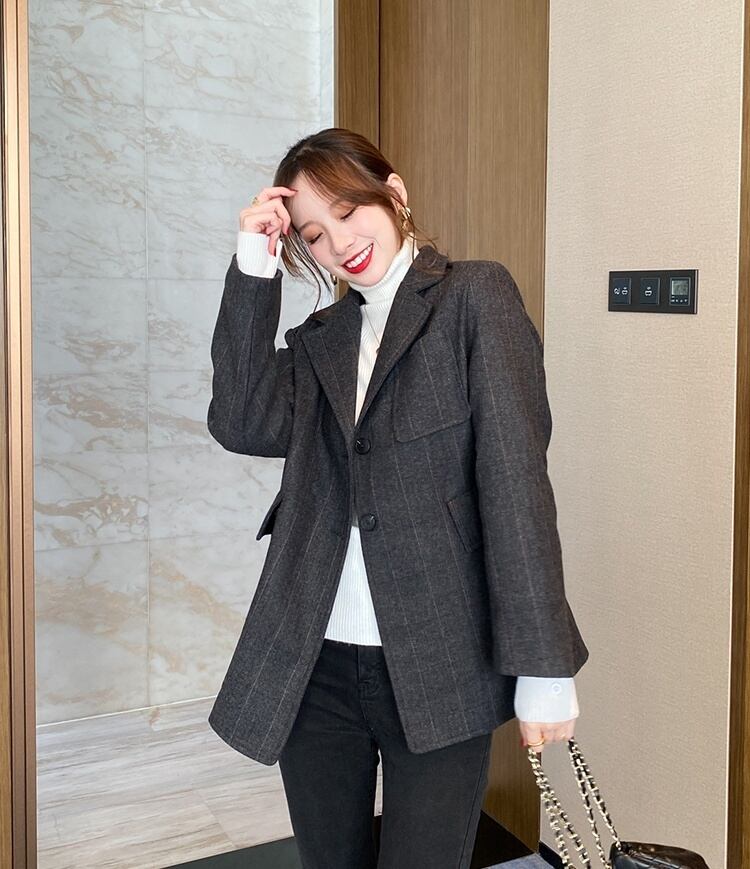 袖口に付いたボタンがアクセントに。ジャケットやコートのインナーに活躍します。
