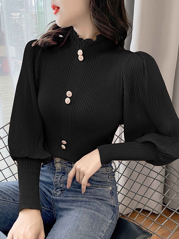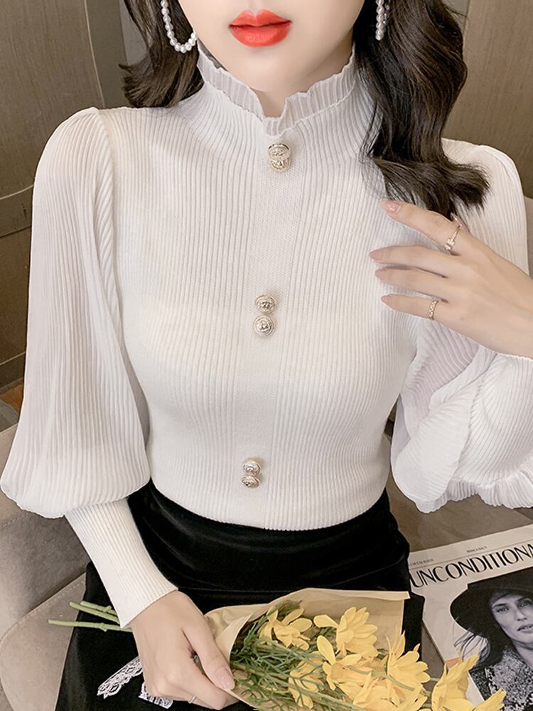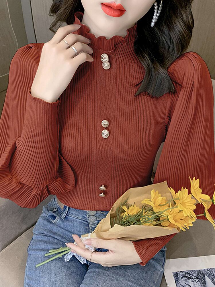 トップス カットソー プルオーバー レギュラー丈 長袖 レギュラー袖 ラウンドネック ハーフハイカラー スリム プリーツ レース ナイロン 大人可愛い 上品 お洒落 大人女子 こなれ感 セクシー エレガント とろみ感 無地 春 秋 誕生日 10代 20代 30代 女性用 ママ OL 通勤 学生 通学 デート お出かけ 女子会 お泊まり 休日 イベント リゾート 旅行 高原 レストラン ショッピング 外国風 オルチャン モテ ギフト インスタ映え 韓国風 フリーサイズ カラメル 黒 白 アプリコット