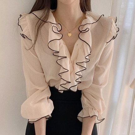 トップス デート シャツ ブラウス カットソー 袖あり 長袖 フリル かわいい 大人可愛い きれいめ シンプル カジュアル 大人 上品 おしゃれ お洒落 主役級 存在感 春 秋 10代 20代 30代 レディース 女性用 OL 学生 デート お出かけ 公園デビュー 女子会 休日 イベント 旅行 着回し 普段使い ファッション コーデ 楽ちん モテ トレンド 流行 インスタ映え S M L XL