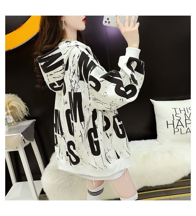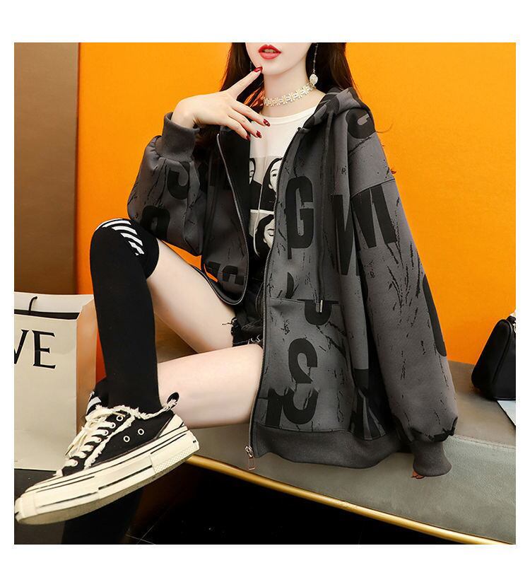 トップス パーカー フーディー ミディアム丈 長袖 レギュラー袖 フード付き ポケット 前開き ポリエステル 厚手 ベルベット カジュアル かっこいい ラフ メンズライク ルーズ 個性的 抜け感 柄 アルファベット 秋 冬 誕生日 クリスマス バレンタイン 10代 20代 30代 女性用 ママ 通勤 学生 通学 お出かけ 公園デビュー 女子会 休日 イベント 旅行 ショッピング 着回し ファッション コーデ 楽ちん 暖かい ギフト インスタ映え 韓国風 M L XL 2XL ゆる 白 グレー オレンジ
