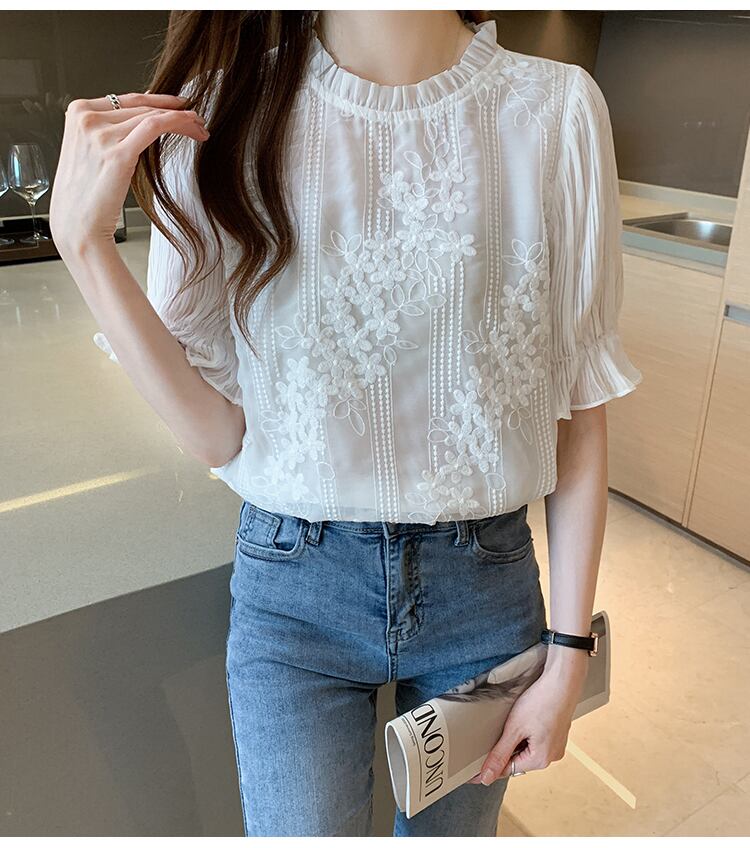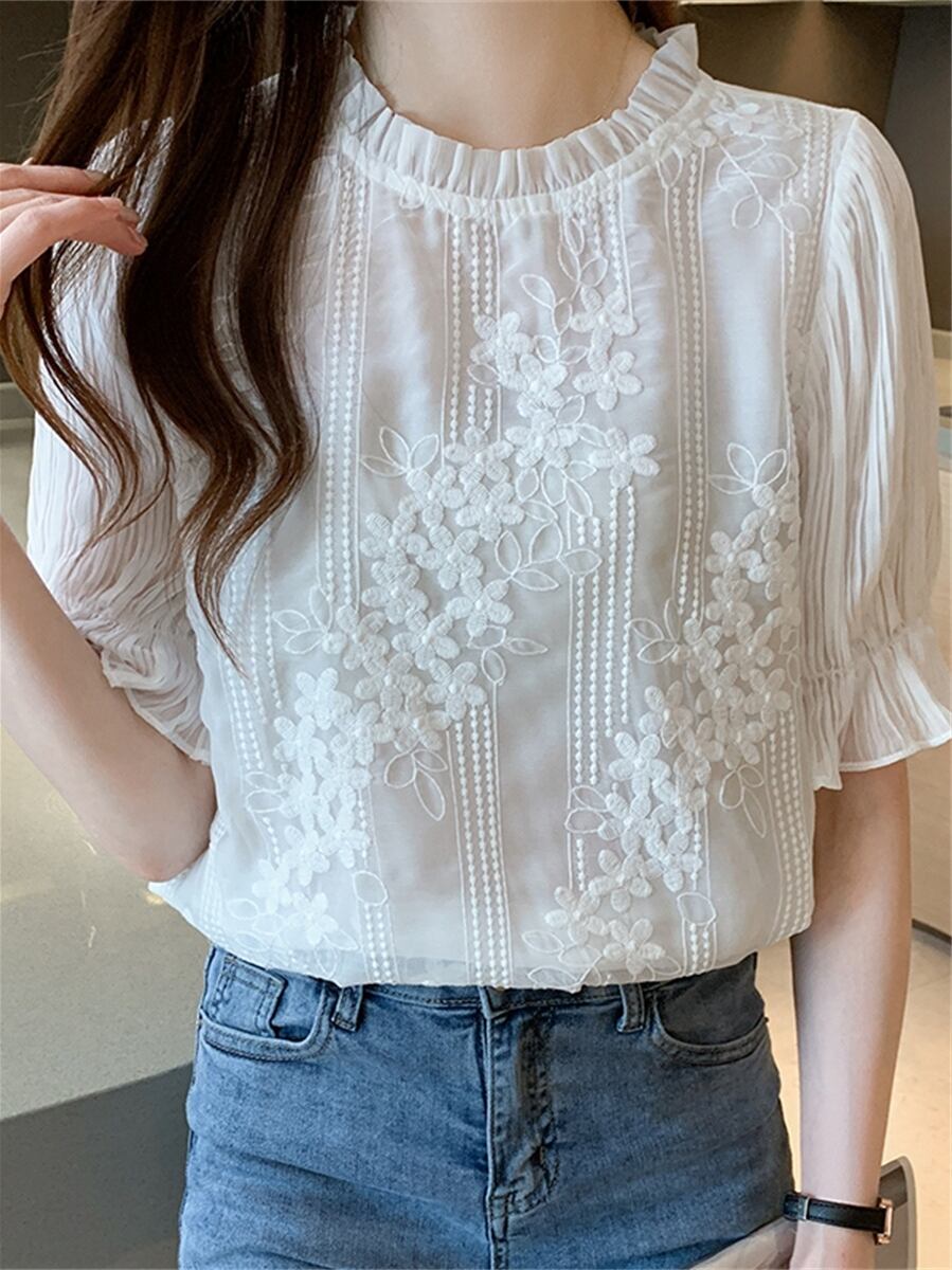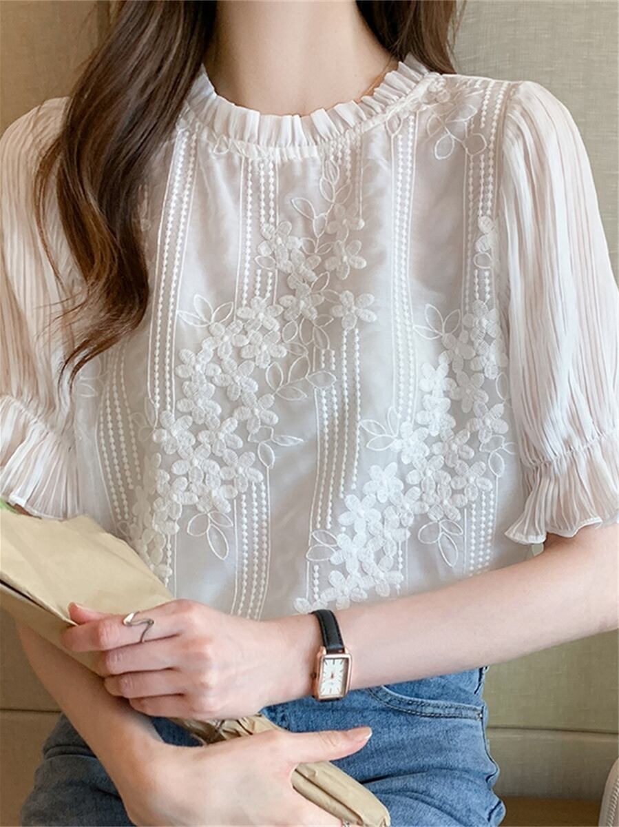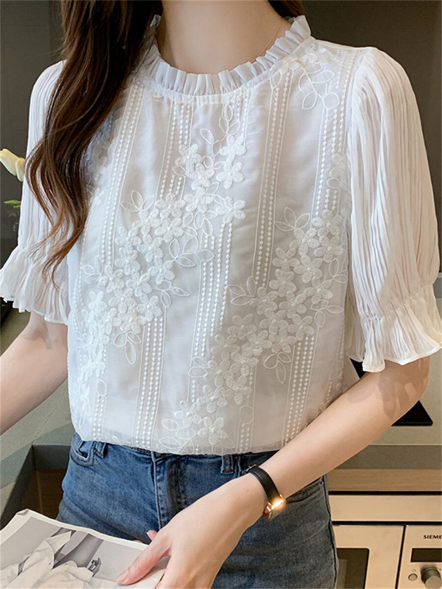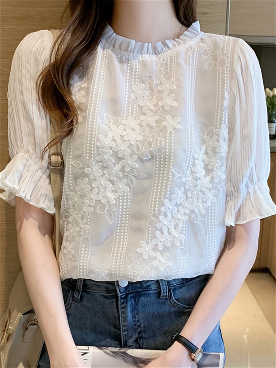 トップス ブラウス プルオーバー レギュラー丈 トランペットスリーブ スタンドカラー ストレート レース 大人可愛い きれいめ お洒落 大人女子 キュート エレガント とろみ感 夏 誕生日 10代 20代 30代 40代 女性用 ママ OL 通勤 学生 通学 デート お出かけ 女子会 お泊まり 休日 アウトドア イベント リゾート 旅行 海 プール 高原 ホテル レストラン ショッピング ファッション スタイル モテ ギフト 安い インスタ映え 洋風 S M L XL 2XL 白 ホワイト