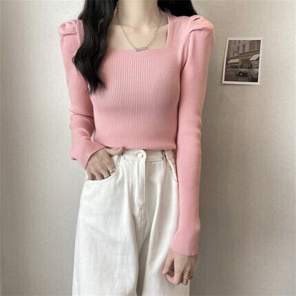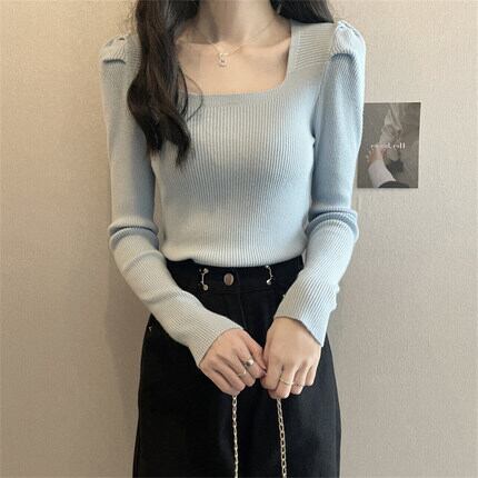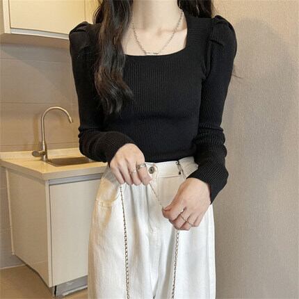 トップス カットソー 長袖 ボリューム袖 スクエアネック スリム タイト 細身 ストレート Iライン リブ 薄手 かわいい 大人可愛い きれいめ シンプル 大人 上品 おしゃれ お洒落 エキゾチック 大人可愛い 大人女子 こなれ感 ラブリー キュート ガーリー クール モード系 エレガント 存在感 とろみ感 抜け感 秋 冬 クリスマス バレンタイン 10代 20代 30代 レディース 女性用 OL 通勤 学生 通学 デート お出かけ 女子会 休日 イベント 旅行 レストラン 普段使い モテ フリーサイズ