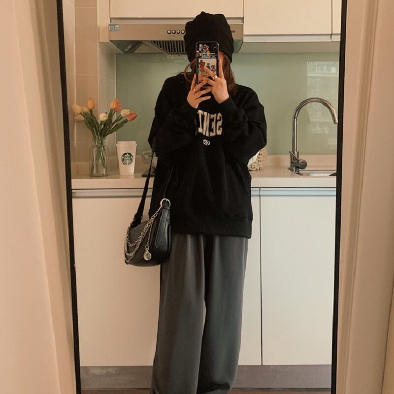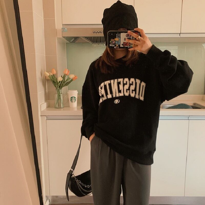 トップス トレーナー ミディアム丈 袖あり 長袖 ラウンドネック ワイド かわいい 大人可愛い きれいめ シンプル カジュアル 大人 おしゃれ こなれ感 ラフ メンズライク ボーイッシュ スポーティー 存在感 プリント 春 秋 冬 10代 20代 レディース 女性用 OL 通勤 学生 通学 デート お出かけ 女子会 お泊まり 休日 アウトドア イベント 旅行 着回し 普段使い ファッション コーデ スタイル 楽ちん モテ 体型カバー プレゼント ギフト サイズ S M L ゆったり 色展開 ブラック