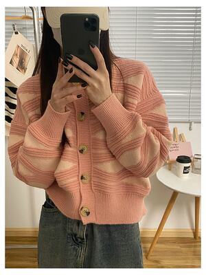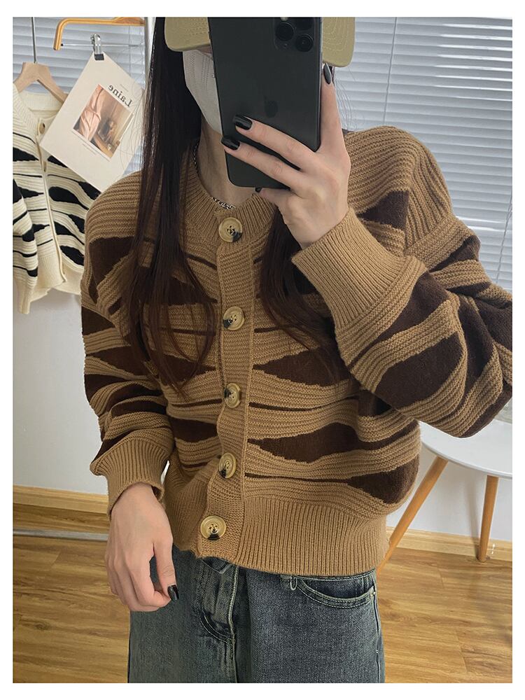 トップス ニットソー カーディガン レギュラー丈 長袖 レギュラー袖 襟なし スクープネック ニット アクリル カジュアル お洒落 ラフ キュート ルーズ とろみ感 抜け感 柄 ストライプ 春 秋 冬 誕生日 クリスマス バレンタイン 10代 20代 30代 40代 女性用 ママ OL 通勤 学生 通学 デート お出かけ 女子会 お泊まり 休日 アウトドア イベント 高原 ガーデン ショッピング 着回し 重ね着 コーデ 暖かい モテ ギフト 安い 韓国風 S M L XL 白 茶色 ピンク