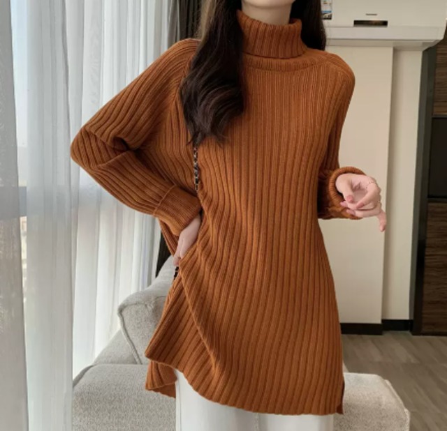トップス ニットソー ミドル丈 レギュラー袖 タートルネック 襟付き ストレート ニット ウール 厚手 ビスコース きれいめ シンプル 大人 ラフ ルーズ クール 無地 秋 冬 誕生日 バレンタイン 10代 20代 30代 40代 女性用 ママ OL 通勤 学生 通学 デート お出かけ 女子会 お泊まり 休日 アウトドア イベント 旅行 高原 ホテル レストラン ショッピング オルチャン コーデ 楽ちん 暖かい モテ ギフト ワンサイズ オートミール キャラメル 黒 赤 青 茶色 アプリコット