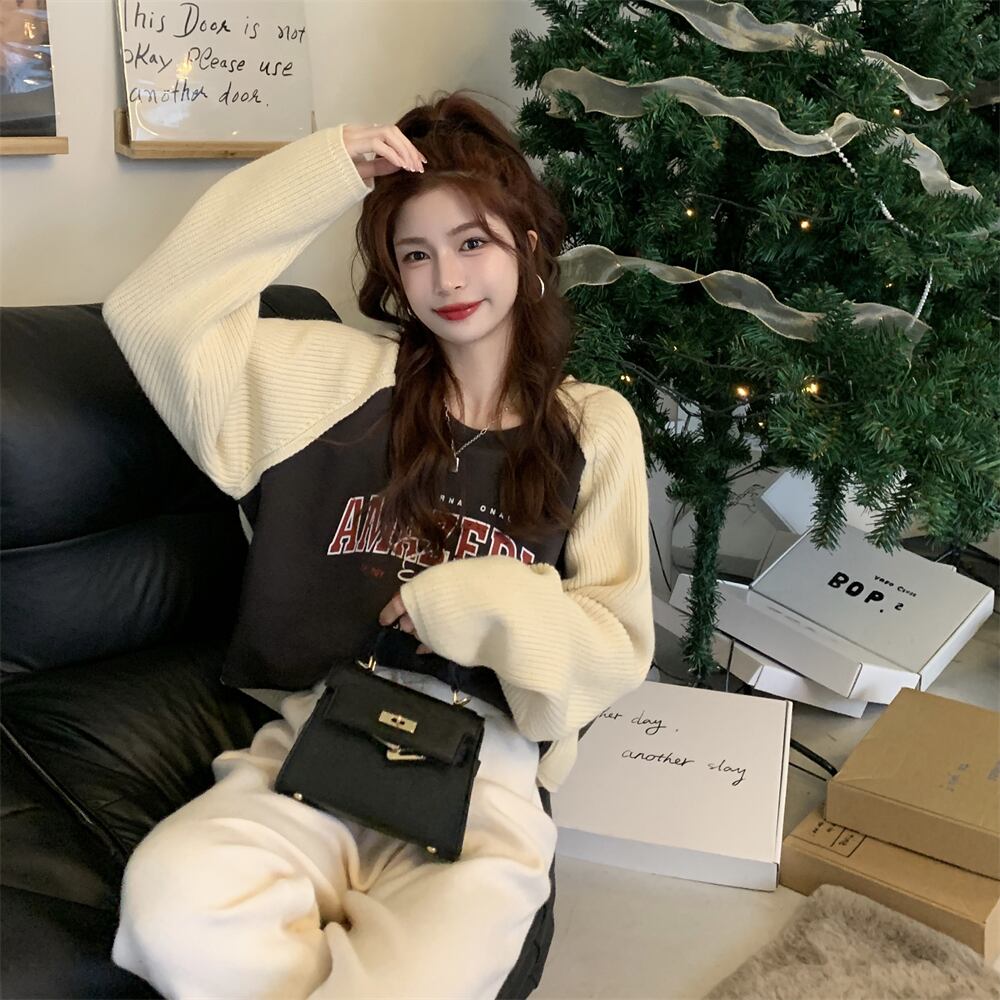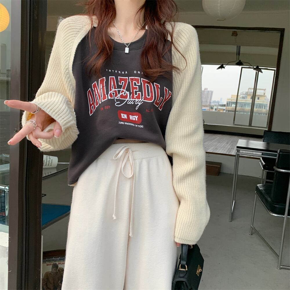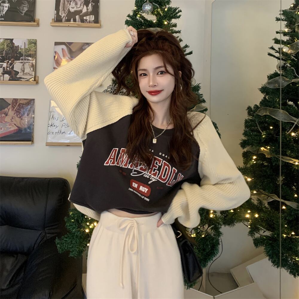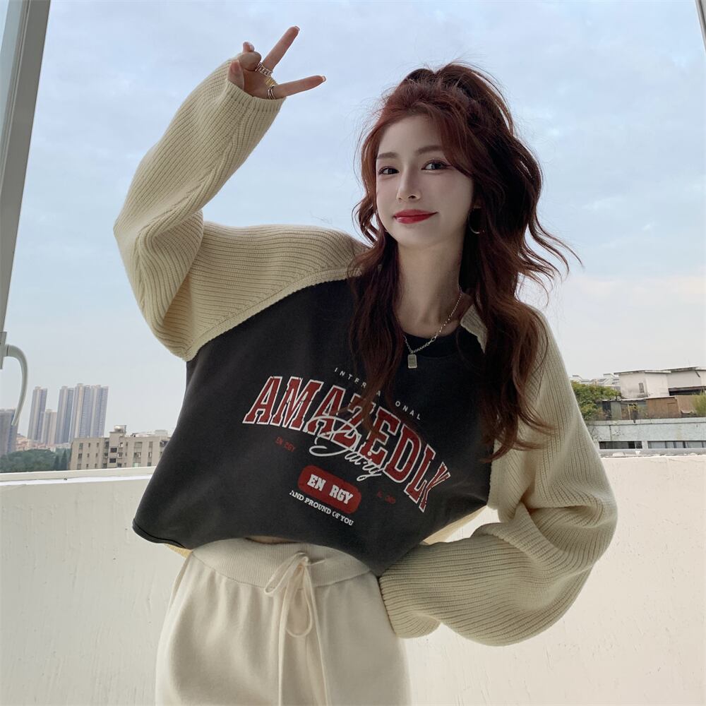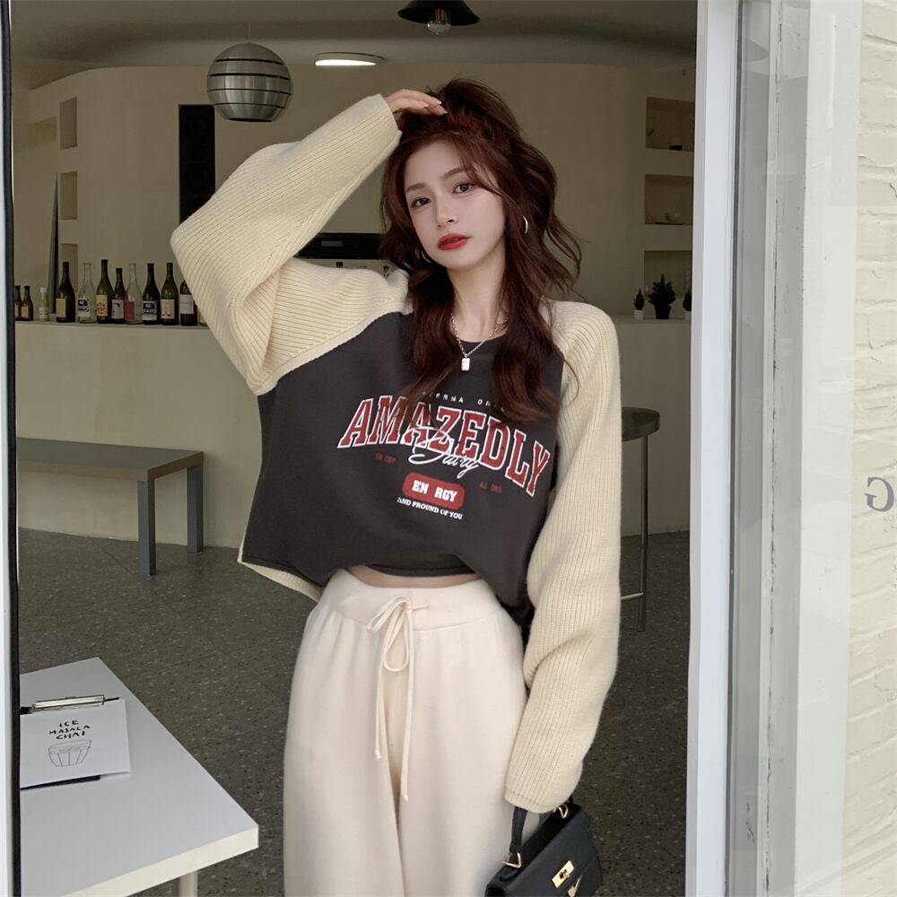袖部分からニットに切り替わったお洒落な長袖トップスです