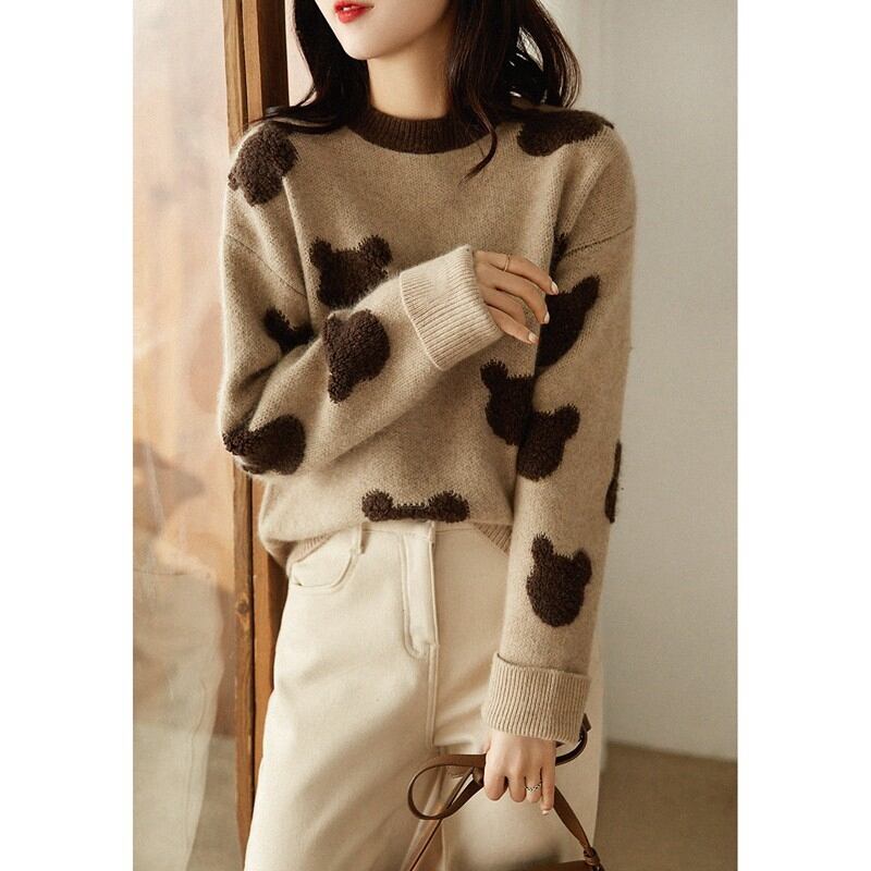 トップス セーター プルオーバー レギュラー丈 長袖 レギュラー袖 ラウンドネック ストレート 刺繍 柔らかい フリース 大人可愛い カジュアル お洒落 ラブリー キュート とろみ感 甘い 高級感 柄 アニマル柄 秋 冬 誕生日 クリスマス バレンタイン 10代 20代 30代 女性用 ママ 通勤 学生 通学 デート お出かけ 公園デビュー お泊まり 休日 アウトドア イベント 旅行 ホテル ショッピング 楽ちん 暖かい ギフト インスタ映え ヨーロッパ風 S M L XL ゆる 赤 グレー ベージュ