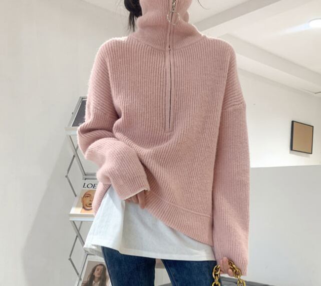トップス セーター プルオーバー レギュラー丈 長袖 タートルネック ハイカラー ストレート ファスナー 厚手 シンプル カジュアル お洒落 大人女子 ラフ キュート ルーズ とろみ感 シック 無地 秋 冬 誕生日 クリスマス バレンタイン 10代 20代 30代 女性用 ママ OL 通勤 学生 通学 デート お出かけ 女子会 お泊まり 休日 アウトドア イベント リゾート 旅行 ホテル レストラン ショッピング 楽ちん 暖かい ギフト 韓国風 S M L XL ゆる 黒 グレー オフホワイト ピンク