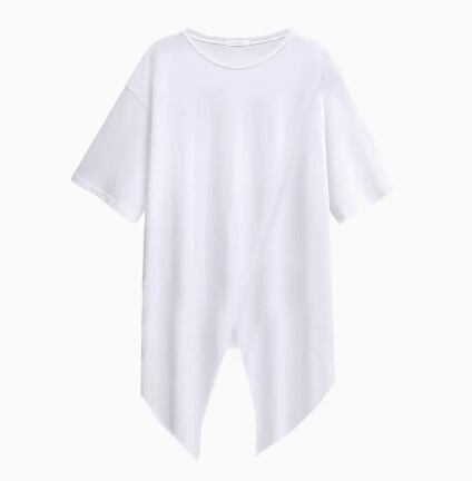 大きくスリットが入ったハイセンスなデザインの半袖白Tシャツ