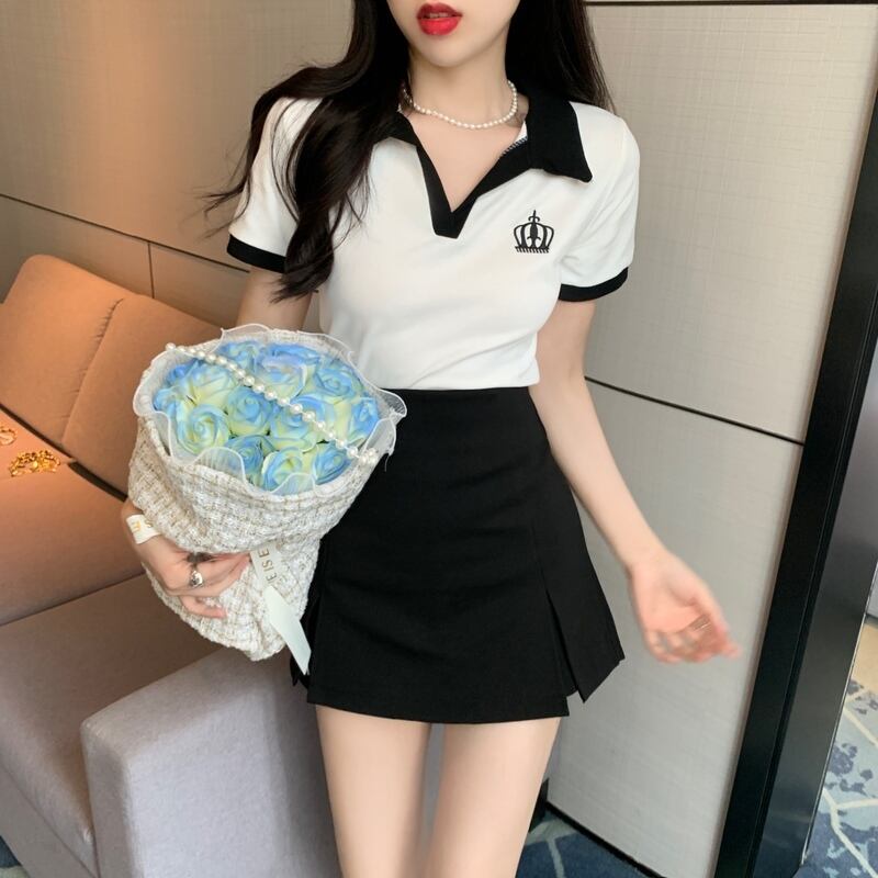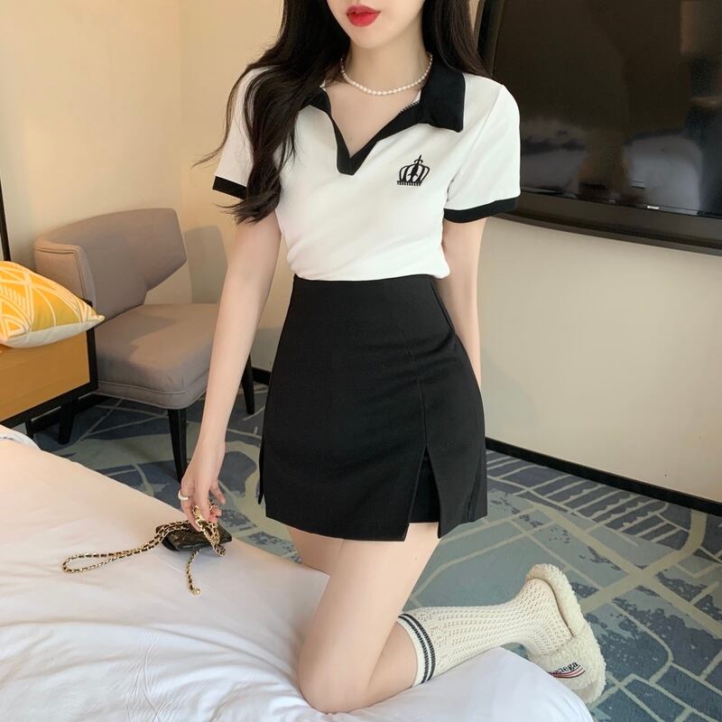 トップス ボトムス パンツ Tシャツ プルオーバー ショートパンツ ショート丈 膝上 半袖 レギュラー袖 襟付き ポロカラー Hライン ファスナー ハイウエスト 綿 2点セット ツーピース カジュアル お洒落 ラフ キュート クール セクシー 無地 夏 誕生日 10代 20代 女性用 学生 通学 デート お出かけ 女子会 休日 アウトドア イベント 旅行 海 プール ショッピング オルチャン スタイル モテ 美脚 脚長 ギフト インスタ映え 韓国風 S M L XL 2XL マスタードグリーン 黒 白