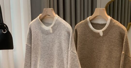 トップス セーター プルオーバー レギュラー丈 長袖 レギュラー袖 ラウンドネック ウール フェイクツーピース 可愛い シンプル カジュアル お洒落 大人 ルーズ 個性的 とろみ感 無地 秋 冬 誕生日 クリスマス バレンタイン 10代 20代 30代 40代 女性用 ママ OL 通勤 学生 通学 デート お出かけ 女子会 お泊まり 休日 アウトドア イベント 旅行 ホテル レストラン ショッピング オールマッチ 普段使い 楽ちん 暖かい モテ ギフト 安い インスタ映え S M L ブラウン グレー