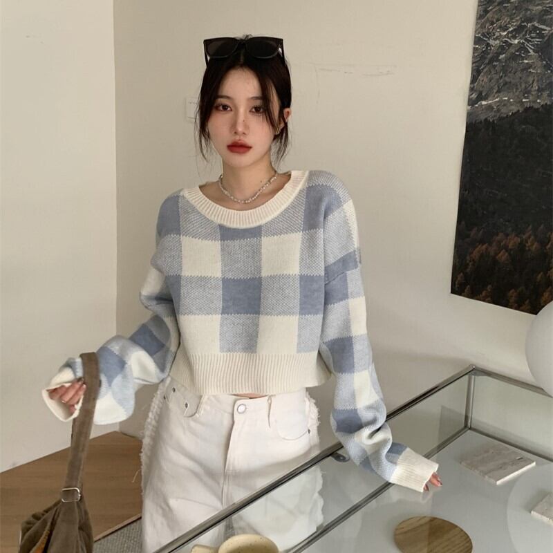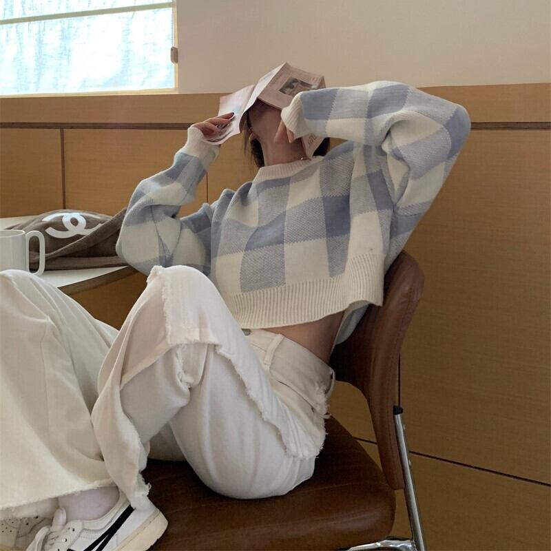 トップス セーター 袖あり 長袖 ラウンドネック ワイド 伸縮性 ニット かわいい 大人可愛い きれいめ カジュアル 大人 おしゃれ お洒落 レトロ 大人可愛い 大人女子 こなれ感 ラフ ラブリー キュート ガーリー 主役級 存在感 とろみ感 抜け感 チェック柄 格子柄 秋 冬 クリスマス バレンタイン 10代 20代 30代 40代 レディース 女性用 ママ 学生 通学 デート お出かけ 公園デビュー 女子会 休日 イベント 旅行 着回し 普段使い 暖かい モテ フリーサイズ ゆる ブルー カーキ