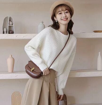トップス ニットソー プルオーバー レギュラー丈 長袖 レギュラー袖 ラウンドネック ストレート ニット ウール 大人可愛い シンプル カジュアル お洒落 大人女子 ラブリー キュート ルーズ とろみ感 無地 秋 冬 誕生日 クリスマス バレンタイン 10代 20代 30代 40代 50代 女性用 ママ OL 通勤 学生 通学 デート お出かけ 公園デビュー お泊まり 休日 アウトドア イベント 旅行 ホテル レストラン ショッピング 楽ちん 暖かい モテ ギフト インスタ映え S M L 白