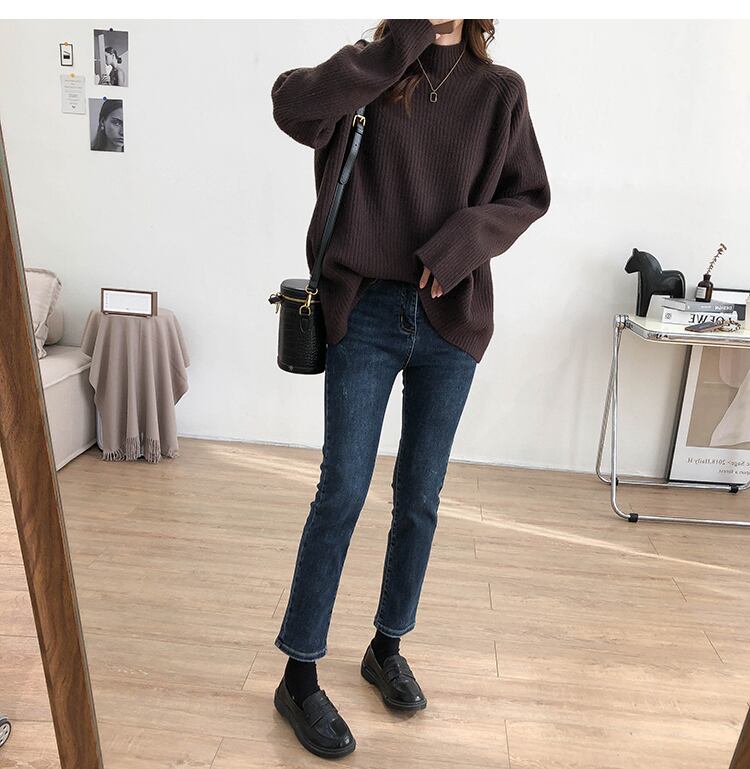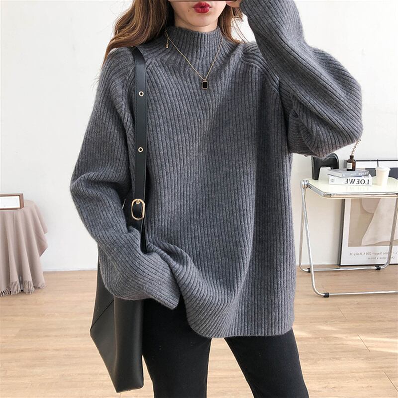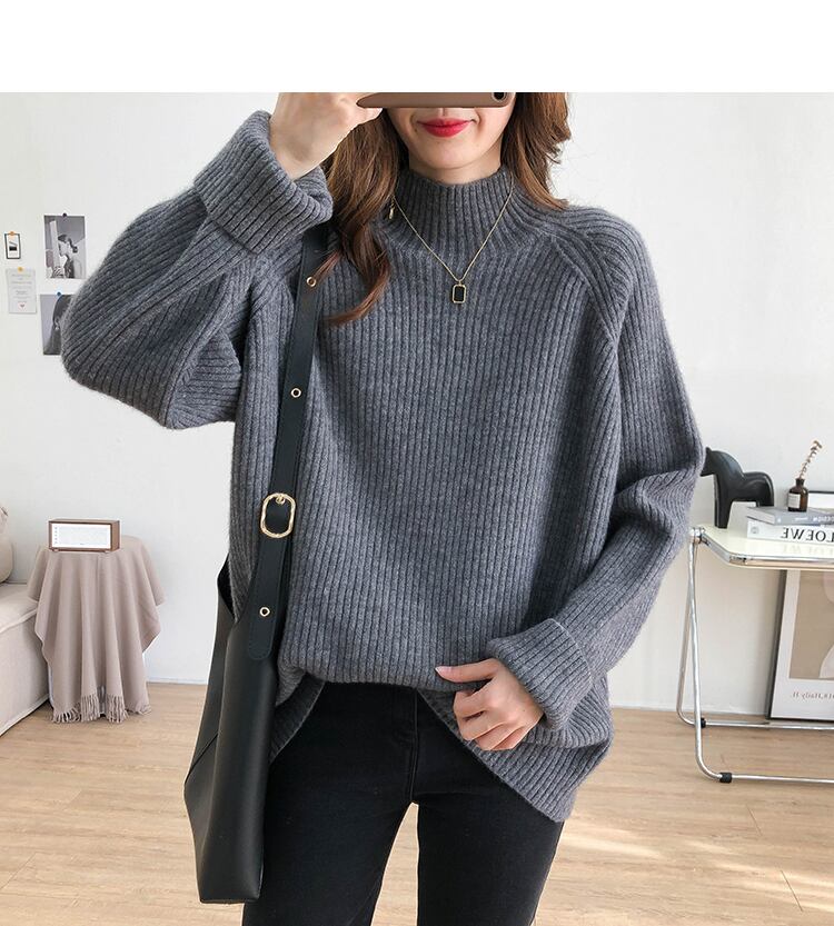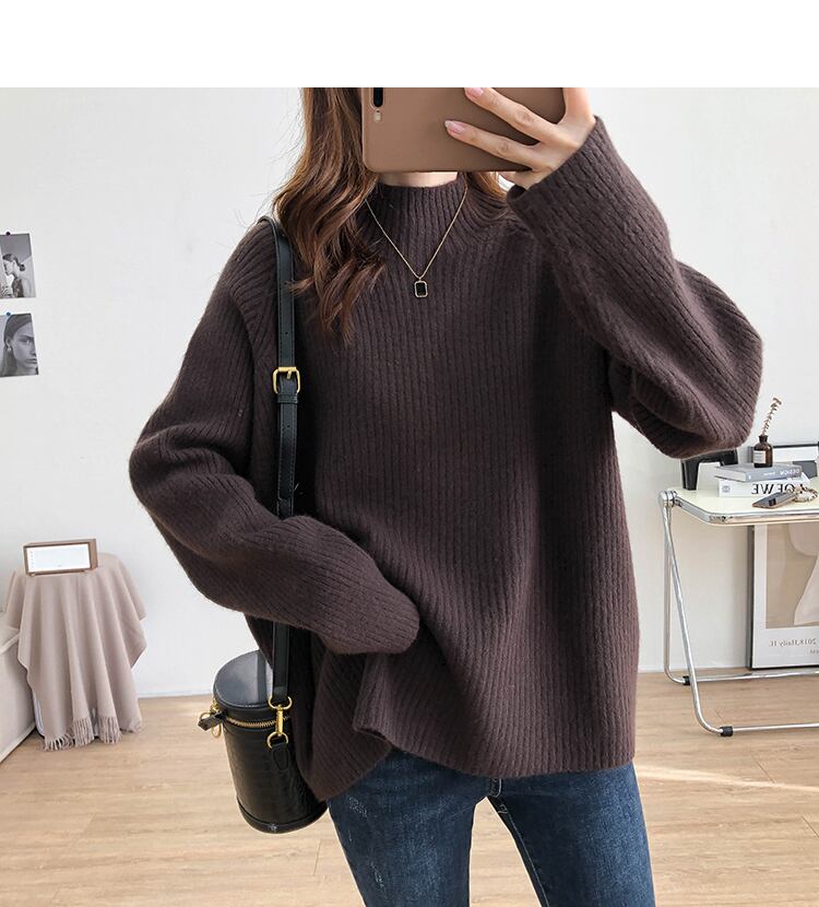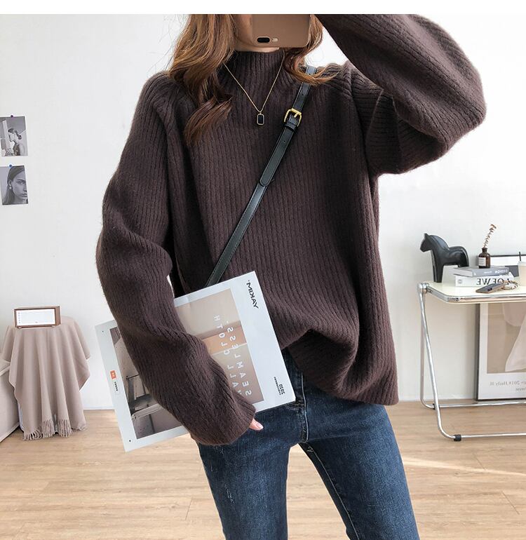 トップス ニットソー レギュラー丈 長袖 萌袖 レギュラー袖 ハーフハイカラー ストレート ニット ウール シンプル カジュアル ラフ ルーズ とろみ感 無地 秋 冬 誕生日 バレンタイン 10代 20代 30代 40代 女性用 ママ OL 通勤 学生 通学 デート 公園デビュー お泊まり 休日 アウトドア イベント 旅行 ホテル レストラン オールマッチ オルチャン 楽ちん 暖かい モテ ギフト 安い トレンド インスタ映え 韓国風 S M L XL 2XL ゆったり 黒 白 茶色 グレー