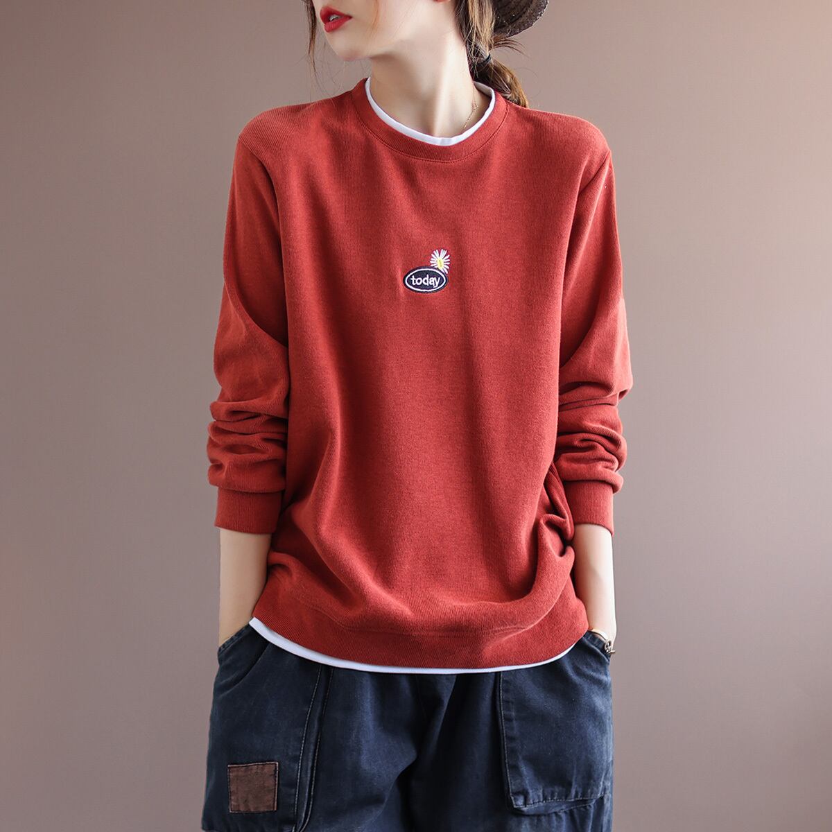 トップス セーター プルオーバー レギュラー丈 長袖 レギュラー袖 ラウンドネック ストレート 刺繍 フリース コットン シンプル カジュアル ラフ メンズライク キュート ルーズ 個性的 抜け感 無地 秋 冬 誕生日 クリスマス バレンタイン 10代 20代 30代 40代 女性用 ママ 通勤 学生 通学 デート お出かけ 公園デビュー 女子会 お泊まり 休日 運動 アウトドア イベント 旅行 ショッピング 普段使い 楽ちん 暖かい ギフト 安い トレンド フリーサイズ ワンサイズ 赤 グレー
