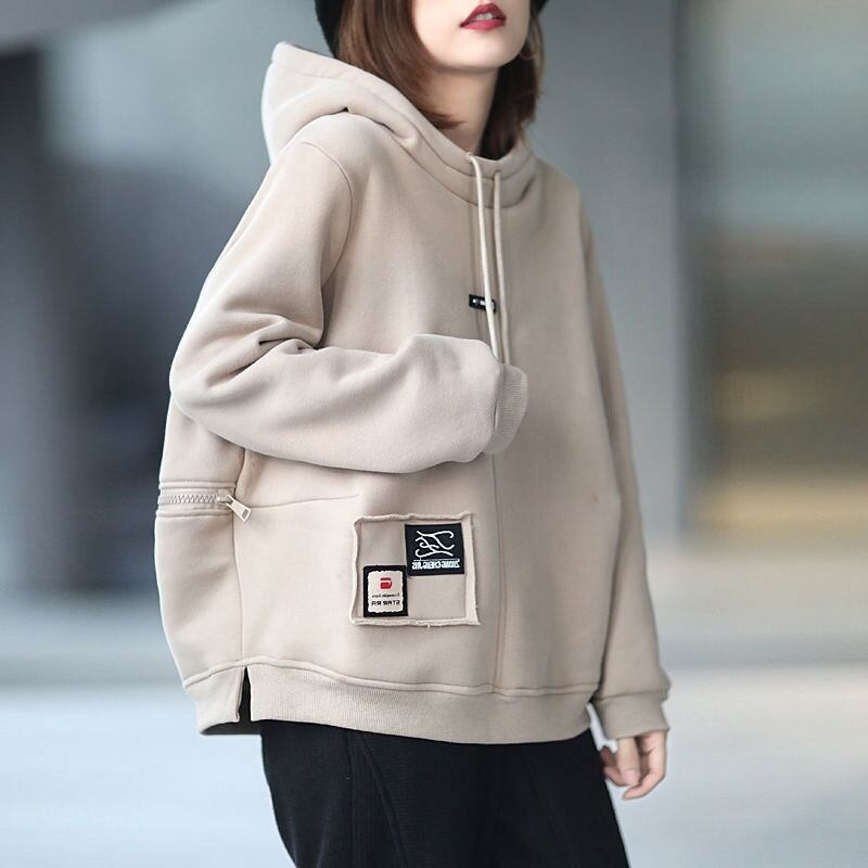 トップス パーカー レギュラー丈 レギュラー袖 フード付き ファスナー ポケット 綿 厚手 コットン ベルベット シンプル カジュアル お洒落 かっこいい ラフ メンズライク ボーイッシュ ルーズ 個性的 とろみ感 無地 秋 冬 誕生日 クリスマス 10代 20代 30代 レディース ママ 通勤 学生 通学 お出かけ 公園デビュー 女子会 休日 運動 アウトドア イベント 旅行 高原 ショッピング 外国風 普段使い 楽ちん 暖かい ギフト 安い インスタ映え M L XL 2XL ミルクティー 黒 赤