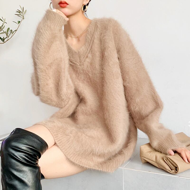 トップス ニットソー セーター プルオーバー ミドル丈 長袖 萌袖 レギュラー袖 Vネック 襟なし ストレート もこもこ ふわふわ ニット フリース 厚手 可愛い シンプル カジュアル お洒落 キュート ガーリー ルーズ とろみ感 無地 ステッチ 秋 冬 誕生日 バレンタイン 10代 20代 30代 女性用 ママ OL 通勤 学生 通学 デート お出かけ 女子会 休日 アウトドア イベント 旅行 ホテル ショッピング 楽ちん 暖かい モテ ギフト 安い インスタ映え S M L XL ゆる 白 カーキ