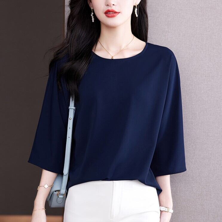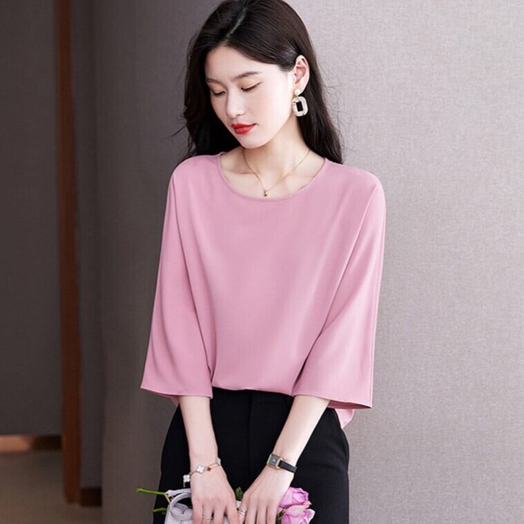 トップス カットソー 袖あり 7分袖 ラウンドネック ストレート Iライン シフォン 薄手 かわいい 大人可愛い きれいめ シンプル 大人 上品 おしゃれ お洒落 大人可愛い 大人女子 こなれ感 キュート ガーリー クール エレガント 存在感 フォーマル とろみ感 抜け感 無地 春 夏 入学式 入園式 卒業式 卒園式 20代 30代 40代 50代 レディース 女性用 ママ ビジネス OL 通勤 デート お出かけ ホテル レストラン 着回し モテ M L XL 2XL 3XL