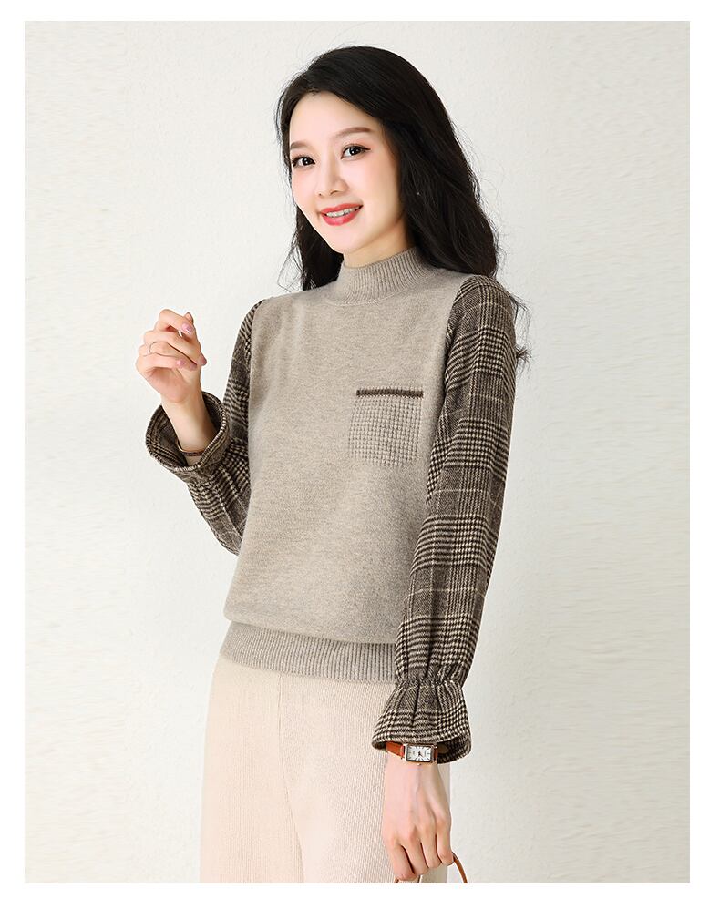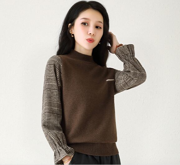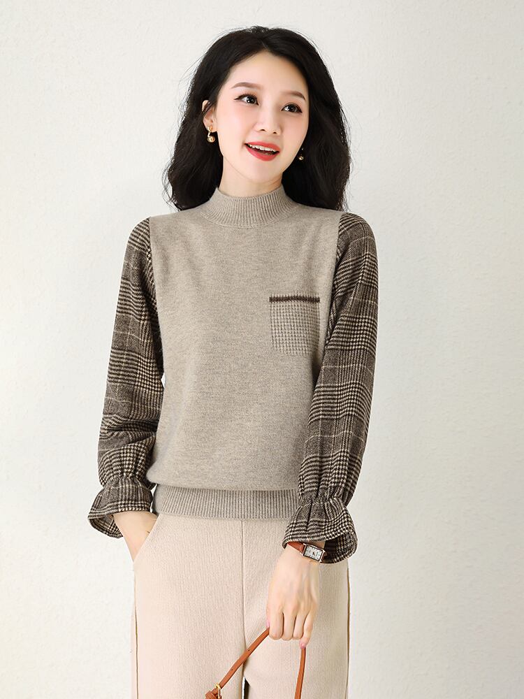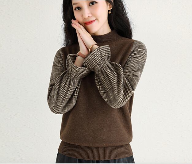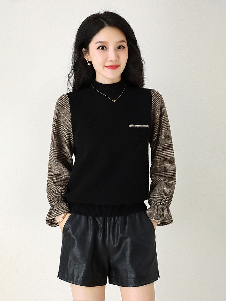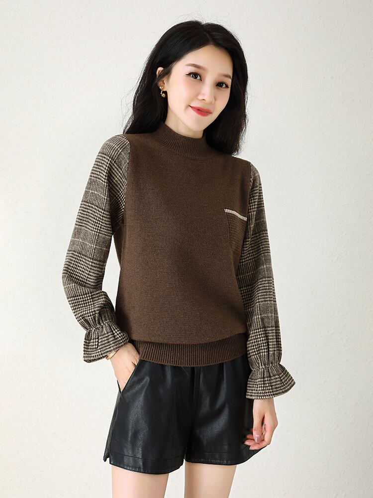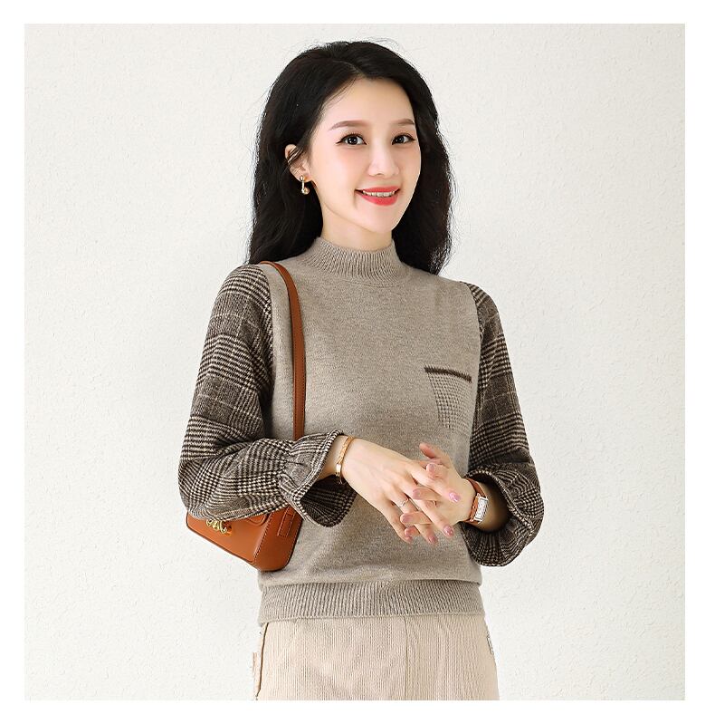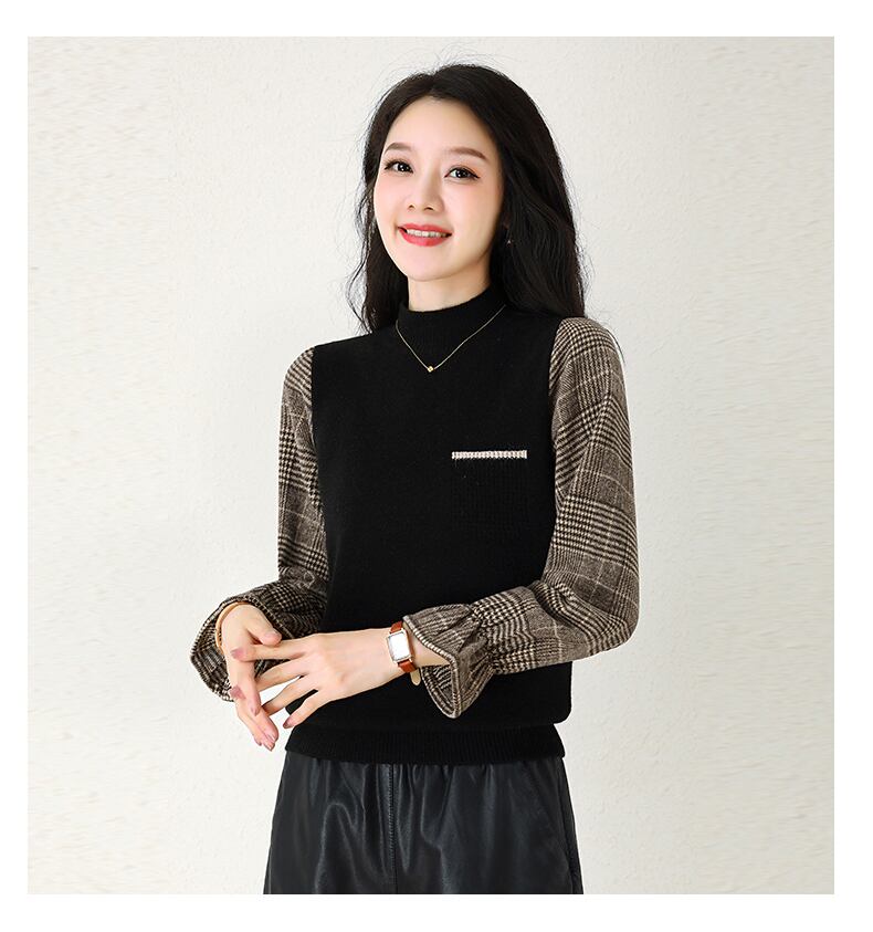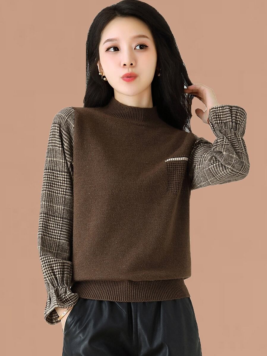 トップス セーター ショート丈 長袖 レギュラー袖 ハーフタートルネック ストレート ウール フェイクツーピース カジュアル 大人 上品 お洒落 こなれ感 個性的 クール とろみ感 柄 格子縞 ステッチ 秋 冬 誕生日 クリスマス 30代 40代 50代 女性用 ママ OL 通勤 お出かけ 公園デビュー 女子会 お泊まり 休日 イベント リゾート 旅行 ホテル レストラン ショッピング ファッション 暖かい ギフト インスタ映え M L XL 2XL 3XL 4XL コーヒー エンバク 黒 赤