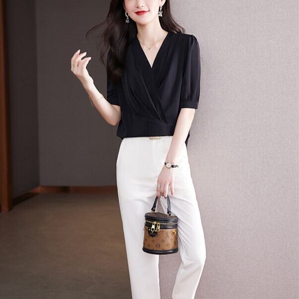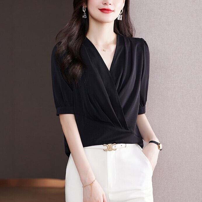 トップス カットソー 袖あり 5分袖 Vネック ストレート Iライン アシンメトリー 薄手 大人可愛い きれいめ シンプル 大人 上品 おしゃれ お洒落 大人可愛い 大人女子 こなれ感 キュート ガーリー クール エレガント 存在感 フォーマル 抜け感 無地 春 夏 20代 30代 40代 50代 レディース 女性用 ビジネス OL 通勤 デート お出かけ 女子会 パーティー リクルート ホテル レストラン 着回し 普段使い モテ M L XL 2XL 3XL 白 ホワイト 黒 ブラック