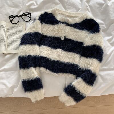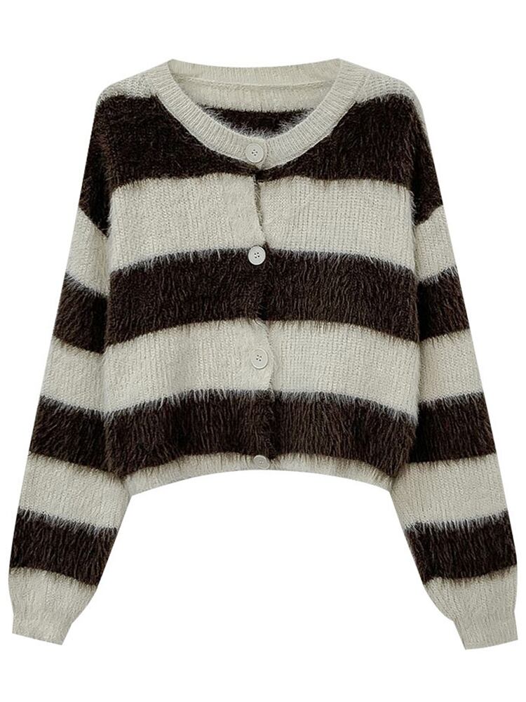 トップス ニットソー カーディガン レギュラー丈 長袖 レギュラー袖 ラウンドネック 柔らかい ニット ウール ポリエチレン 可愛い カジュアル お洒落 キュート とろみ感 柄 ストライプ 秋 冬 誕生日 クリスマス バレンタイン 10代 20代 30代 女性用 ママ OL 通勤 学生 通学 デート お出かけ 公園デビュー お泊まり 休日 イベント リゾート 旅行 高原 レストラン ショッピング オールマッチ 着回し 重ね着 コーデ 楽ちん 暖かい モテ ギフト インスタ映え フリーサイズ コーヒー 青