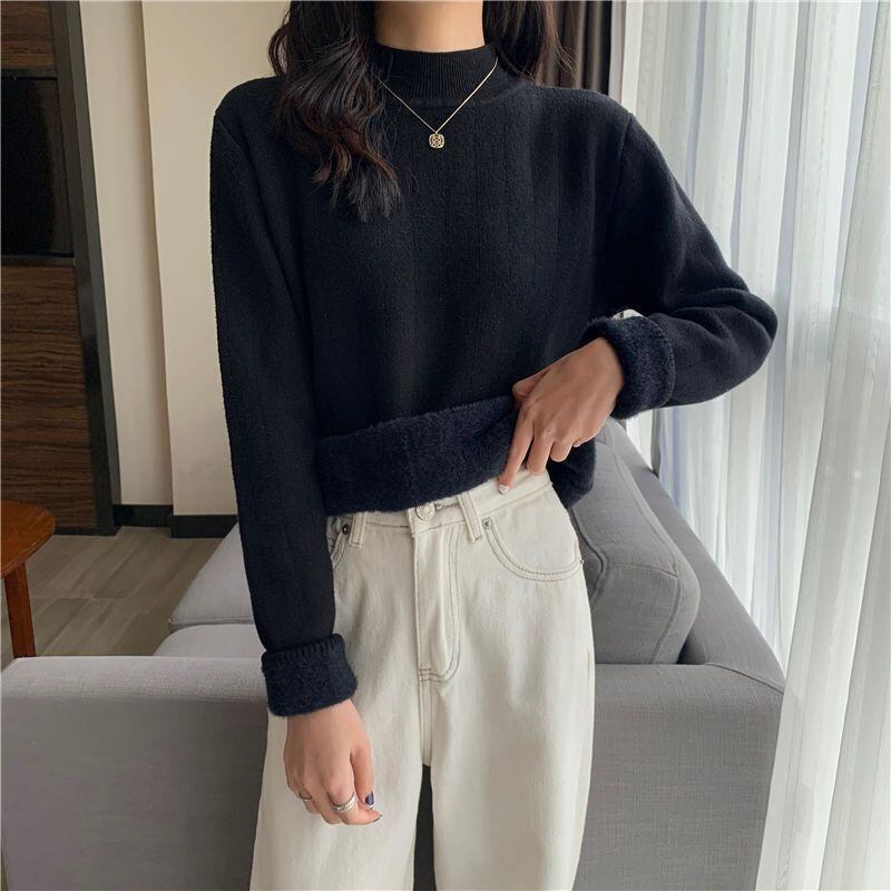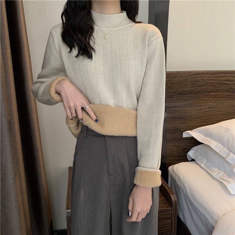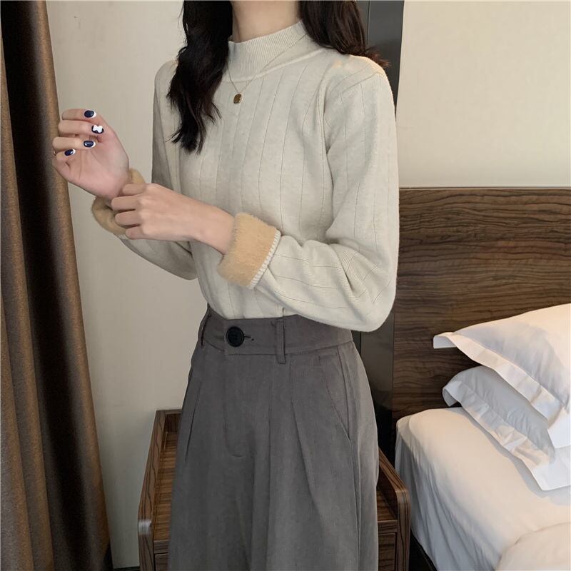 起毛裏地 ワイドリブ トップス セーター ニットソー ミディアム丈 長袖 ドロップショルダー ハーフハイネック 伸縮性 かわいい 大人可愛い シンプル きれいめ おしゃれ 上品 かっこいい 無地 秋 冬 レディース 女性用 ママ ミセス 女の子 オフィス OL 通勤 学生 通学 デート お出かけ 公園デビュー 女子会 普段使い ジャケットイン 韓国風 オルチャン ファッション コーデ スタイル 温かい 防寒 合わせやすい S M L XL 白 ホワイト 黒 ブラック ミルクティー ベージュ カラバリ