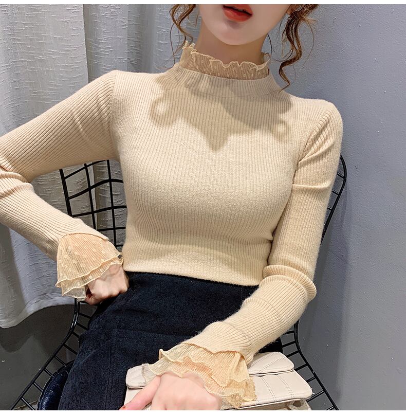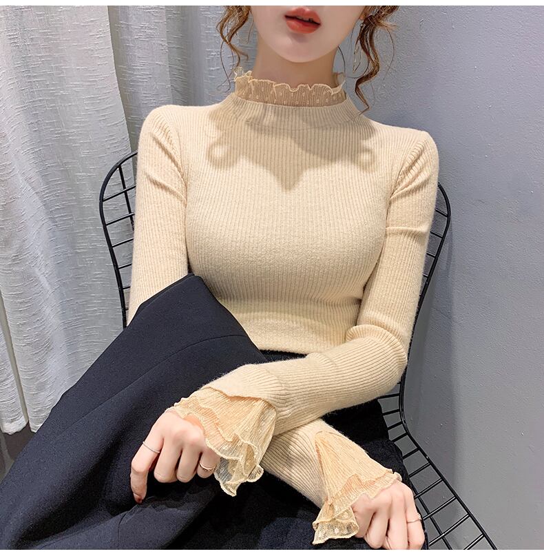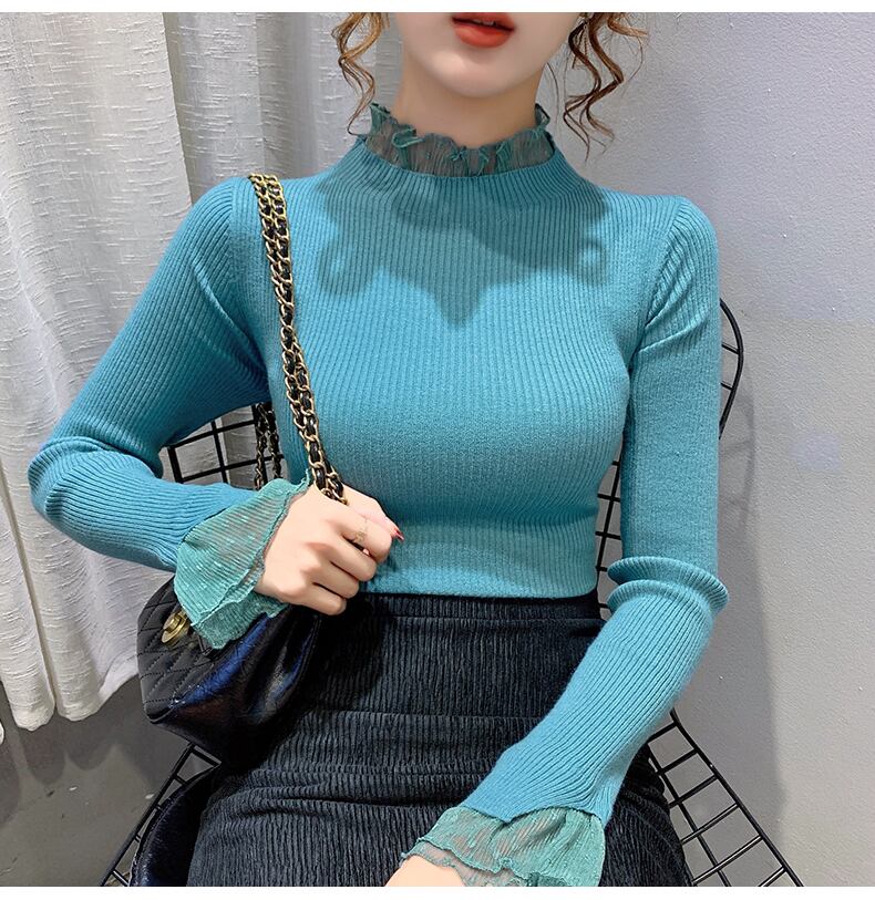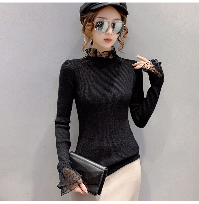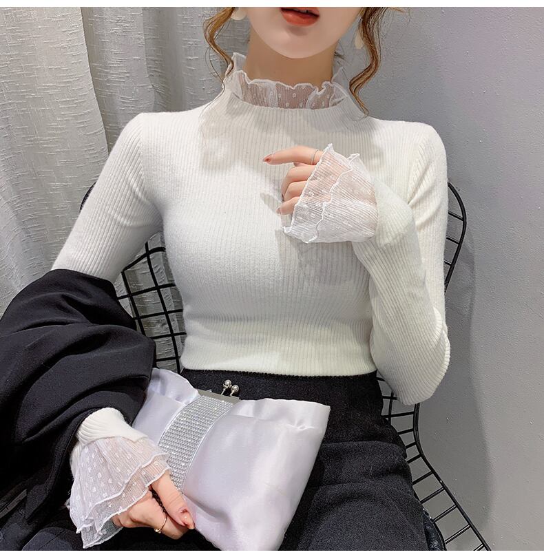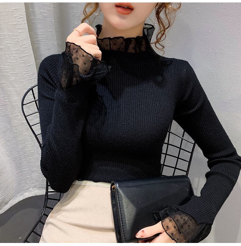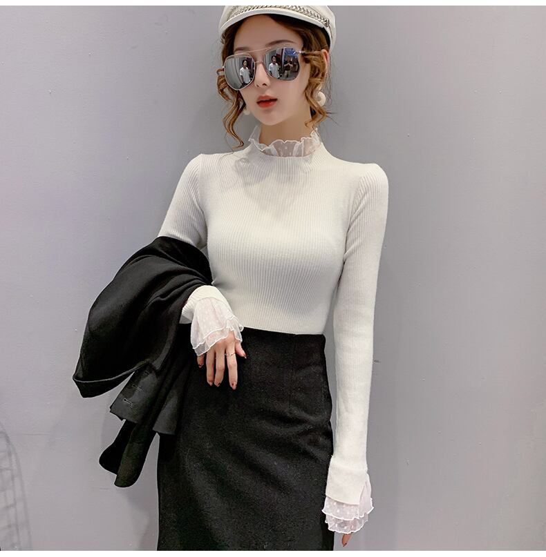 レイヤード風 シアーレース切替え トップス ニットソー ミディアム丈 長袖 襟付き フリルネック リブ ニット ドット柄レース 切り替えデザイン 伸縮性 透け感 シースルー 異素材MIX かわいい 大人可愛い シンプル カジュアル きれいめ 上品 おしゃれ 無地 水玉柄 春 秋 冬 レディース 女性用 ママ 女の子 学生 通学 デート お出かけ 女子会 普段使い 着回し 重ね着見え 韓国風 オルチャン ファッション コーデ スタイル S M L XL ホワイト ブラック ブルー ベージュ カラバリ