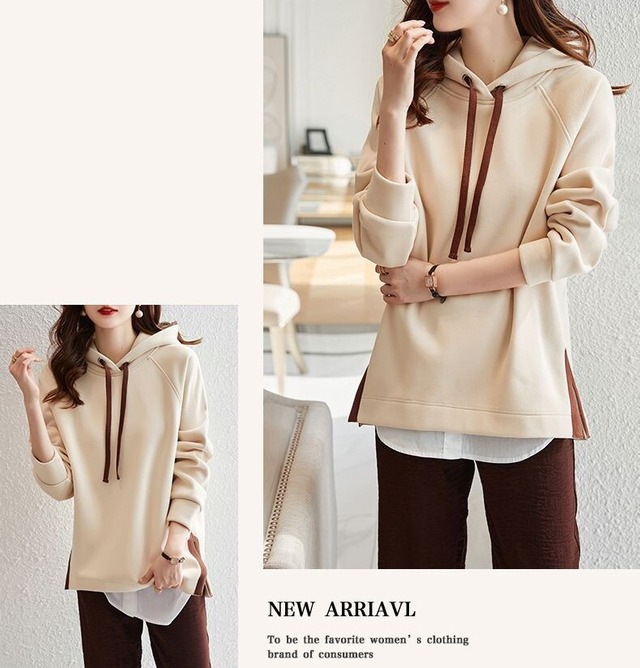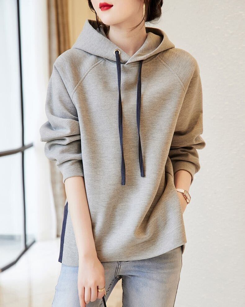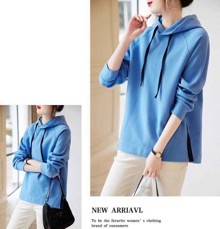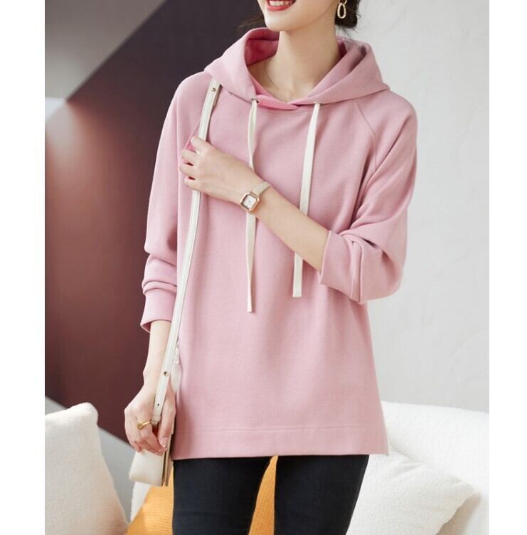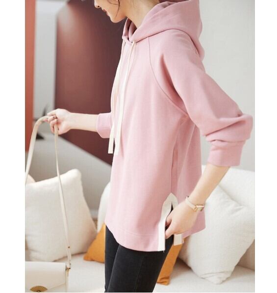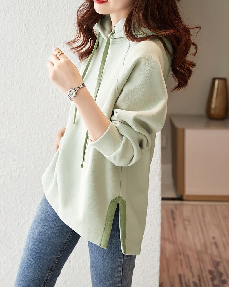 配色デザイン フーディー トップス プルオーバー パーカー ミディアム丈 チュニック丈 長袖 ラグランスリーブ フード付き サイドスリット入り シンプル カジュアル おしゃれ かっこいい スポーティー ボーイッシュ 無地 春 秋 冬 レディース ママ 女の子 学生 通学 デート お出かけ 公園デビュー 普段使い 着回し 重ね着 韓国風 オルチャン ファッション スタイル 体系カバー S M L XL 大きめ ゆったり サイズ ブラック ブルー グリーン グレー オレンジ ベージュ スキンピンク カラバリ