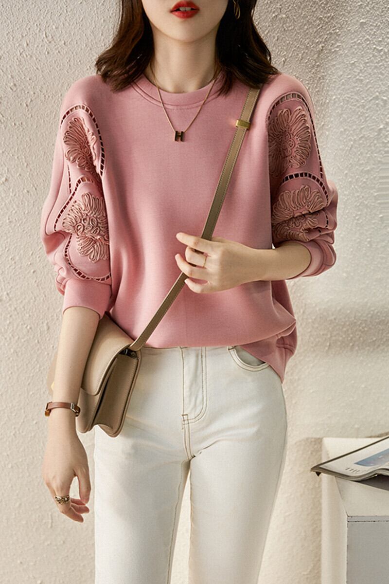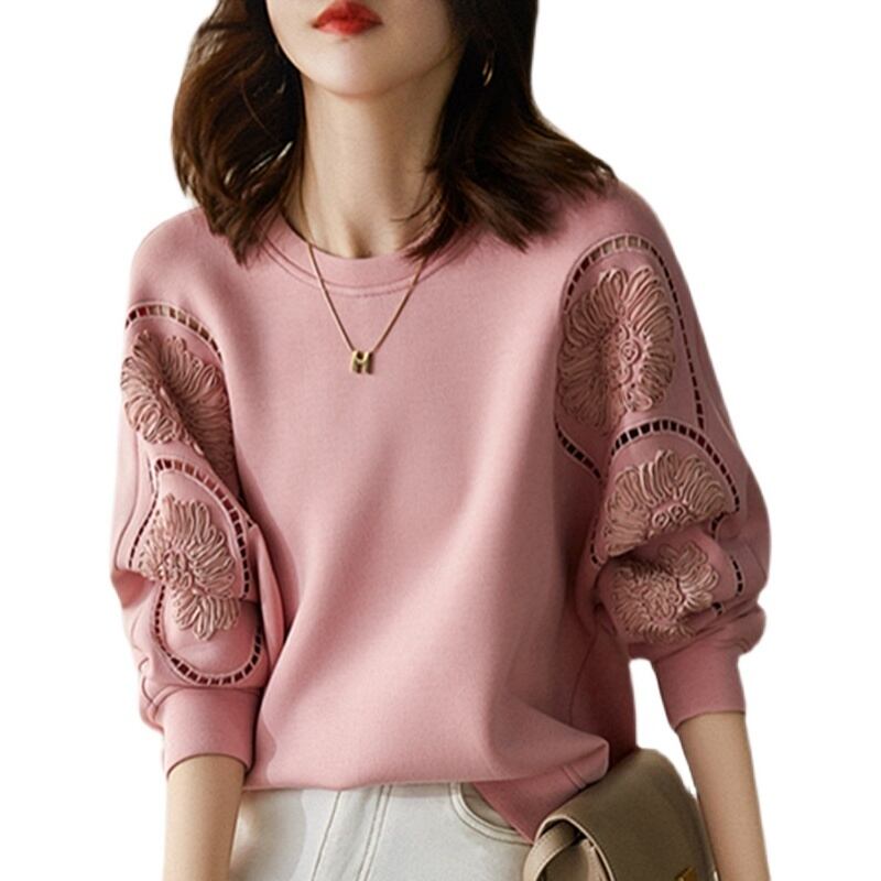 トップス カットソー レギュラー丈 長袖 レギュラー袖 ラウンドネック プリーツ 刺繍 ベルベット きれいめ シンプル 大人 上品 お洒落 大人女子 こなれ感 ルーズ クール エレガント とろみ感 無地 春 秋 誕生日 10代 20代 30代 40代 女性用 ママ OL 通勤 学生 通学 デート お出かけ 女子会 お泊まり 休日 イベント リゾート 旅行 ホテル レストラン ショッピング 外国風 ファッション コーデ モテ ギフト 安い インスタ映え S M L XL 2XL 3XL 黒 白 ピンク