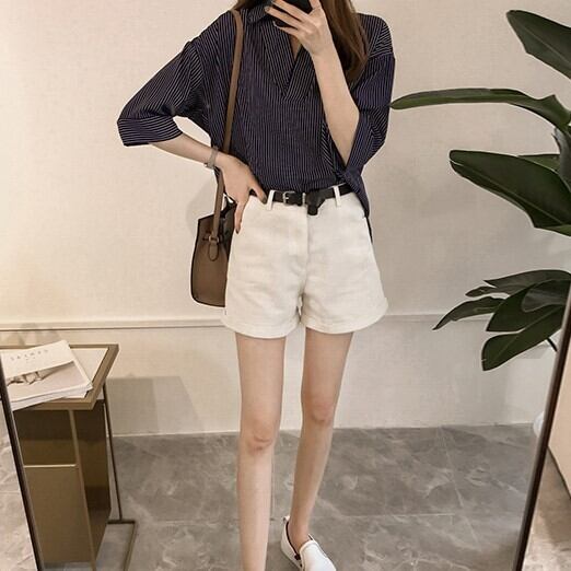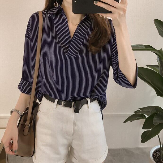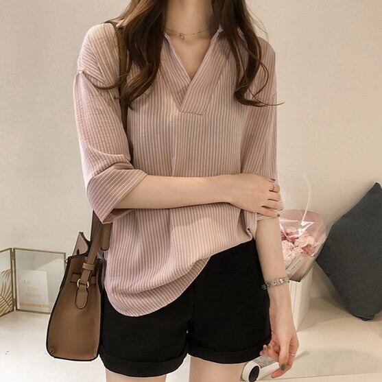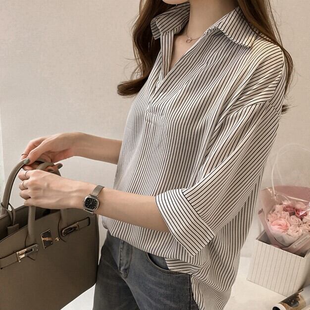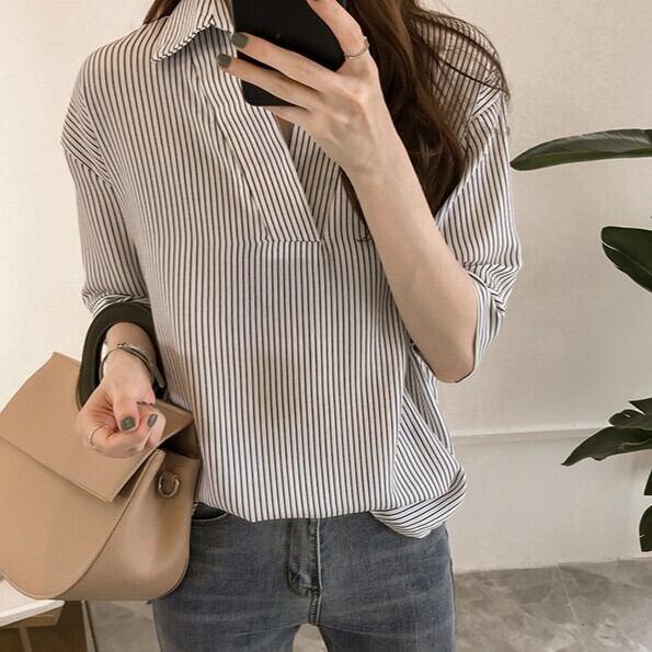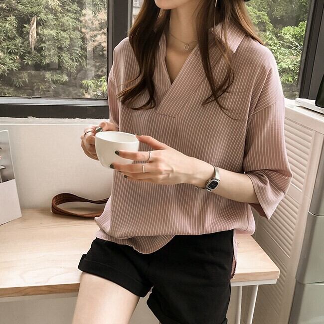 トップス シャツ 袖あり 半袖 ドロップショルダー Vネック 襟付き ストレート Iライン 薄手 かわいい 大人可愛い きれいめ カジュアル 大人 おしゃれ お洒落 大人可愛い 大人女子 こなれ感 キュート ガーリー エレガント 存在感 とろみ感 抜け感 ストライプ 夏 20代 30代 40代 50代 レディース 女性用 ママ 通勤 学生 通学 デート お出かけ 公園デビュー 女子会 休日 リゾート 旅行 着回し 楽ちん モテ M L XL 2XL 3XL 4XL ホワイト ピンク ネイビー