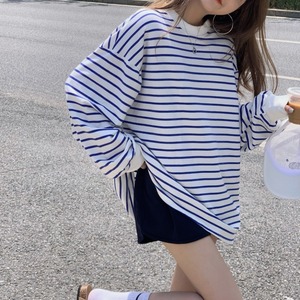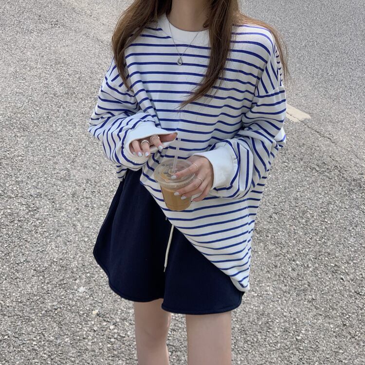 トップス Tシャツ カットソー ミドル丈 長袖 レギュラー袖 ラウンドネック スリム 薄手 シンプル カジュアル お洒落 こなれ感 ラフ メンズライク スポーティー キュート クール 抜け感 柄 ストライプ 春 秋 誕生日 10代 20代 30代 40代 女性用 ママ OL 通勤 学生 通学 デート お出かけ 公園デビュー 女子会 お泊まり 休日 運動 アウトドア イベント リゾート 旅行 ホテル レストラン ショッピング オールマッチ 普段使い 楽ちん モテ ギフト フリーサイズ ゆる 黒 青