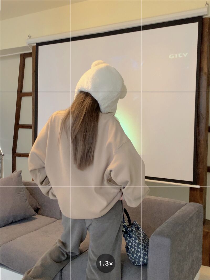 カラーが甘く可愛い雰囲気でカジュアルでゆったりなスタイルです