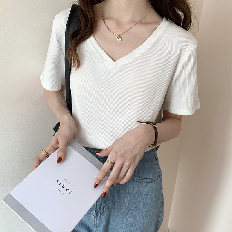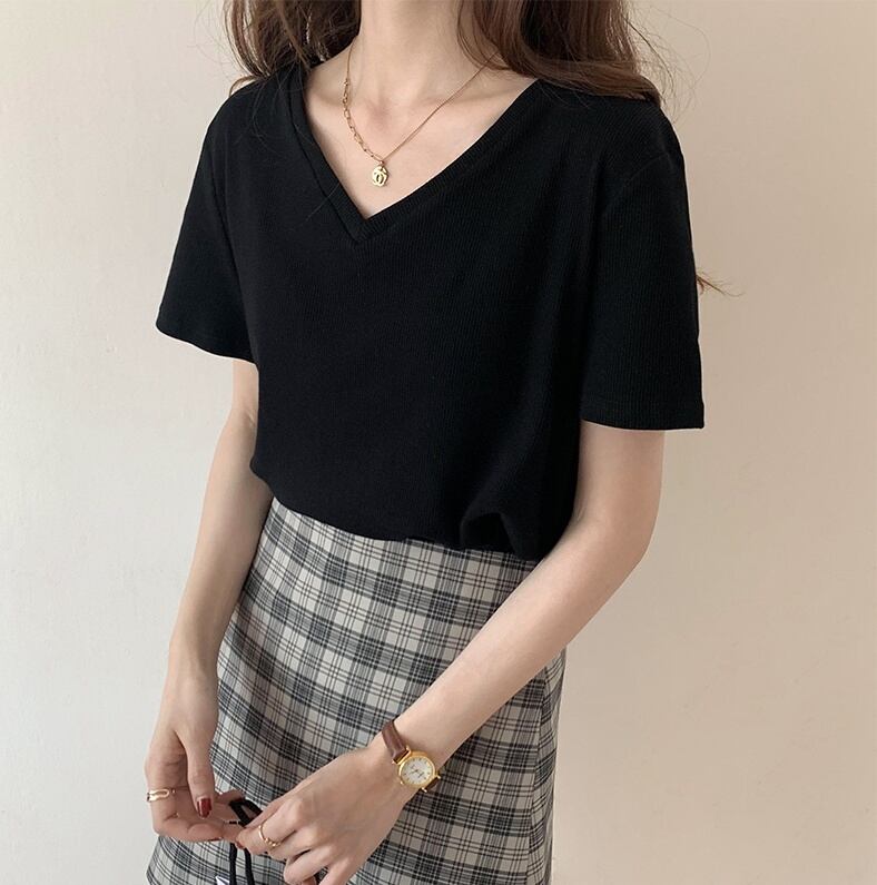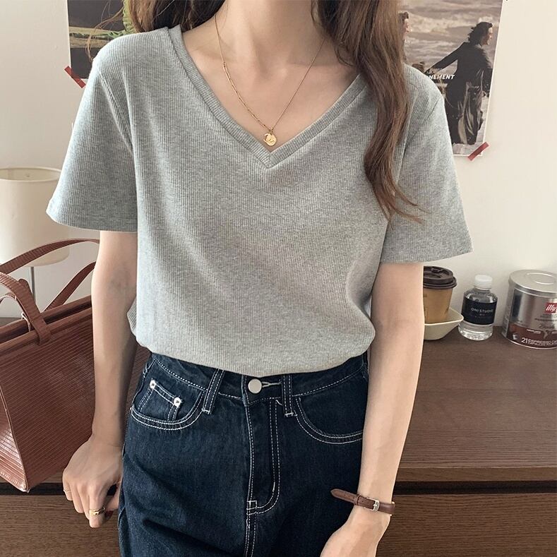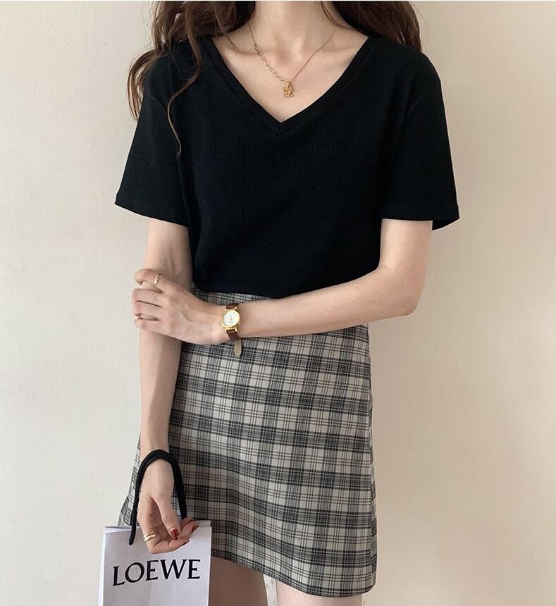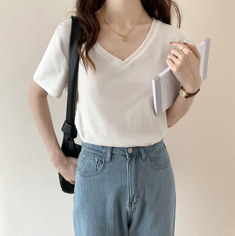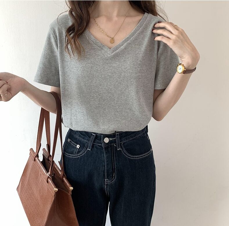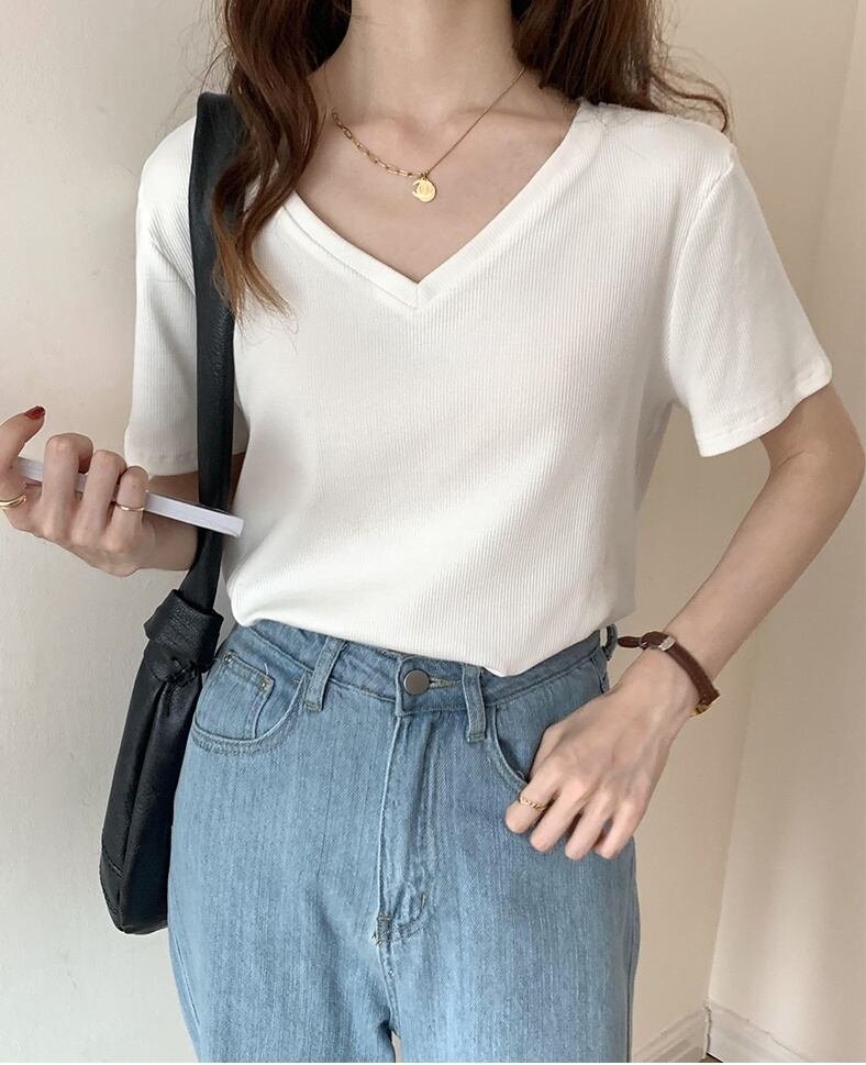 ベーシックデザインで着回し力抜群の半袖Vネックトップス。