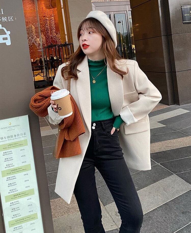 伸縮性のいい生地でボディラインにフィットし、着膨れせずすっきり決まります。