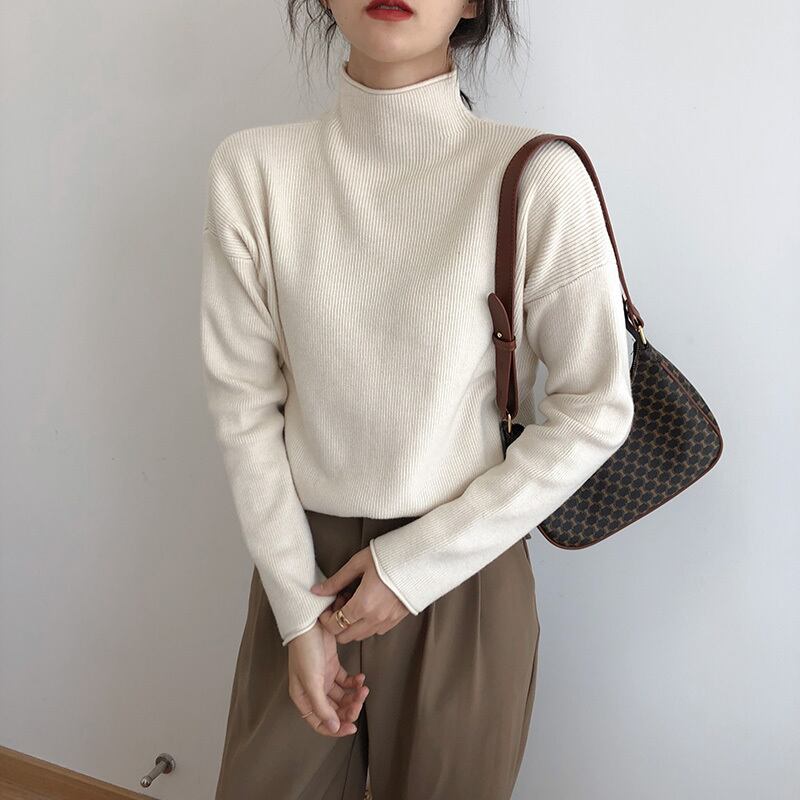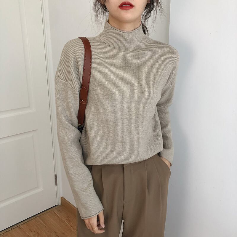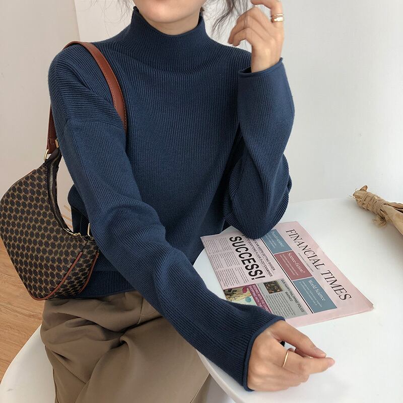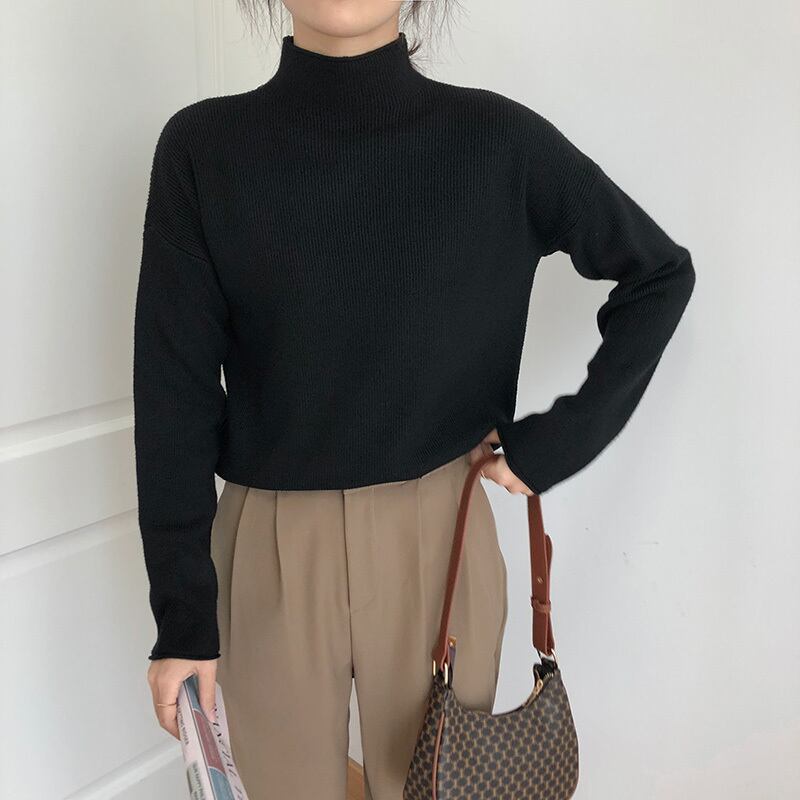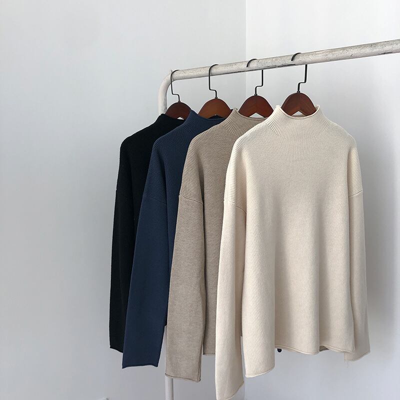 カールヘム トップス セーター ミディアム丈 長袖 ハーフハイネック モックネック 長袖 ドロップショルダー ニット 伸縮性 シンプル カジュアル きれいめ 上品 おしゃれ お洒落 こなれ感 大人っぽい かっこいい シック 無地 秋 冬 レディース 女性用 ママ 女の子 OL 通勤 学生 通学 デート お出かけ 公園デビュー 女子会 普段使い 着回し 韓国風 オルチャン ファッション コーデ スタイル 体系カバー 合わせやすい 万能 黒 ブラック 青 ロイヤルブルー オフ白 オフホワイト カーキ カラバリ