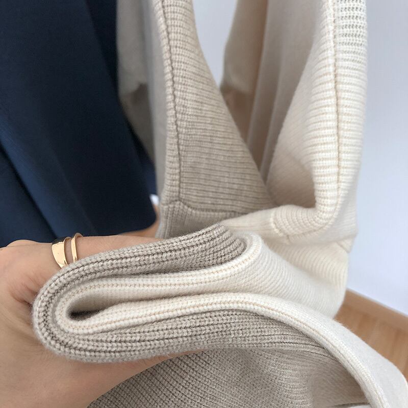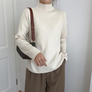 ネックに沿って立ち上がるぴったりしすぎないボトルネックデザインで、ほどよいゆとりのある身幅です。