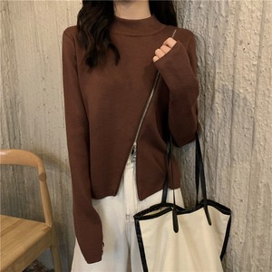 トップス ニットソー セーター レギュラー丈 長袖 レギュラー袖 ラウンドネック ハーフハイカラー ストリート ファスナー ニット きれいめ お洒落 大人女子 こなれ感 クール とろみ感 シック 無地 秋 誕生日 10代 20代 30代 女性用 ママ OL 通勤 学生 通学 デート お出かけ 女子会 お泊まり 休日 イベント リゾート 旅行 ホテル レストラン ショッピング ファッション スタイル 楽ちん 暖かい ギフト インスタ映え S M L コーヒー 黒 青 灰色 カーキ アプリコット