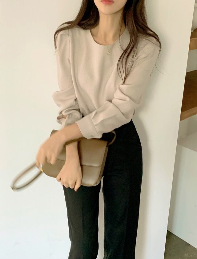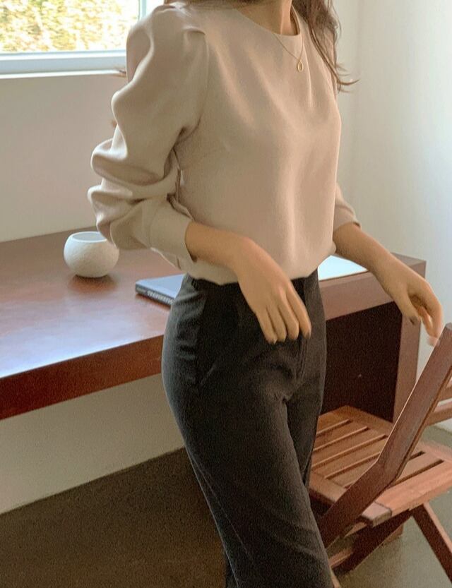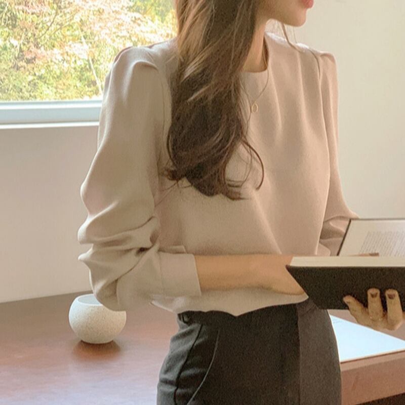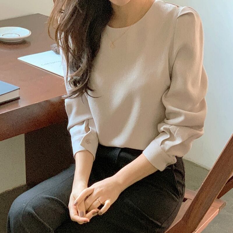 肩&袖口タック 合わせやすい トップス ブラウス ミディアム丈 長袖 パフスリーブ ボリューム袖 襟なし ラウンドネック かわいい 大人可愛い シンプル カジュアル きれいめ 上品 おしゃれ エレガント きちんと感 清楚 無地 春 秋 レディース 女性用 ママ 女の子 オフィス OL 通勤 学生 通学 デート お出かけ 女子会 普段使い お呼ばれ お食事会 会食 ジャケットイン 重ね着 着回し 韓国風 オルチャン ファッション コーデ スタイル 体系カバー 万能 フリーサイズ ゆったり サイズ ベージュ