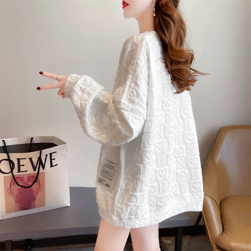 オーバーサイズ ハート&アルファベットステッチ ロゴタグ付き トップス プルオーバー スウェット ミディアム丈 長袖 ドロップショルダー 襟なし ラウンドネック 薄手 かわいい 大人可愛い シンプル カジュアル おしゃれ お洒落 こなれ感 キュート 個性的 総柄 春 秋 冬 レディース ママ マタニティ 女の子 学生 通学 お出かけ 公園デビュー 普段使い 重ね着 着回し 韓国風 オルチャン ファッション 体系カバー M L XL 大きいサイズ ゆったり ゆる サイズ 白 ホワイト ローズレッド カラバリ