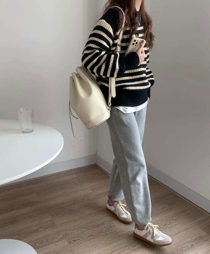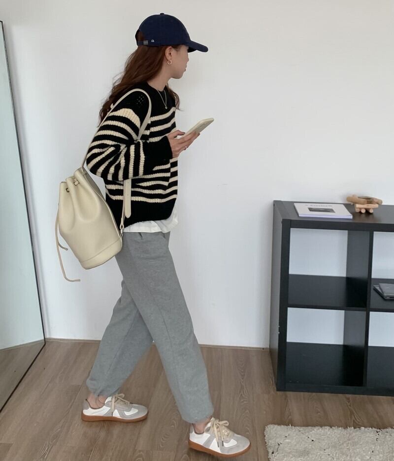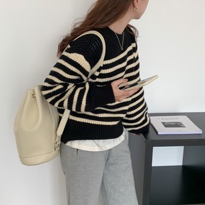 ざっくりローゲージの編地がカジュアルな印象のボーダー柄ニット。