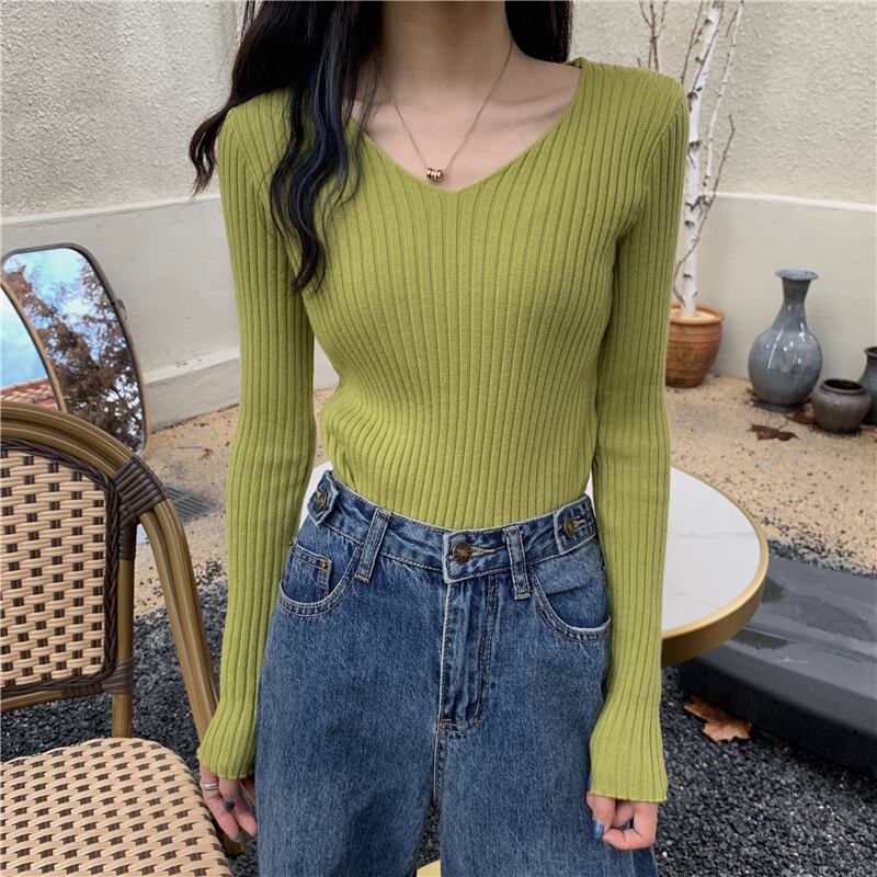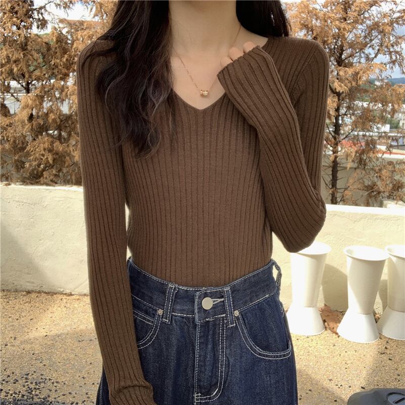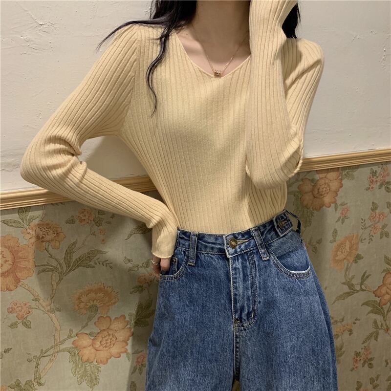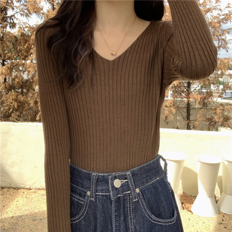 色豊富 すっきり リブニット トップス セーター ニットソー ミディアム丈 長袖 襟なし Vネック スリム 細身 スマート ニット 伸縮性 かわいい 大人可愛い シンプル カジュアル きれいめ おしゃれ 上品 かっこいい 無地 春 秋 レディース ママ 女の子 オフィス OL 通勤 学生 通学 デート お出かけ 女子会 普段使い 重ね着 着回し ジャケットイン 合わせやすい S M L XL ホワイト ブラック ブルー グレー ブラウン マスタードグリーン ダーティーオレンジ ベージュ キャメル カラバリ