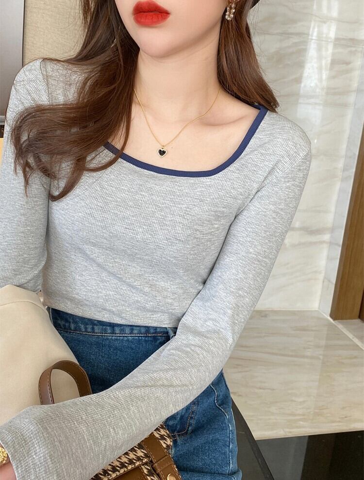 色豊富 配色パイピング 鎖骨見せ リブニット トップス ニットソー ミディアム丈 長袖 襟なし スクエアネック 細身 スリム スマート 伸縮性 ストレッチ ニット かわいい 大人可愛い シンプル カジュアル きれいめ おしゃれ お洒落 上品 すっきり 無地 春 秋 レディース 女性用 ママ 女の子 OL 通勤 学生 通学 デート お出かけ 女子会 普段使い 重ね着 着回し ジャケットイン 韓国系 オルチャン コーデ S M L XL ホワイト ブラック ブルー グリーン グレー ベージュ ピンク カラバリ