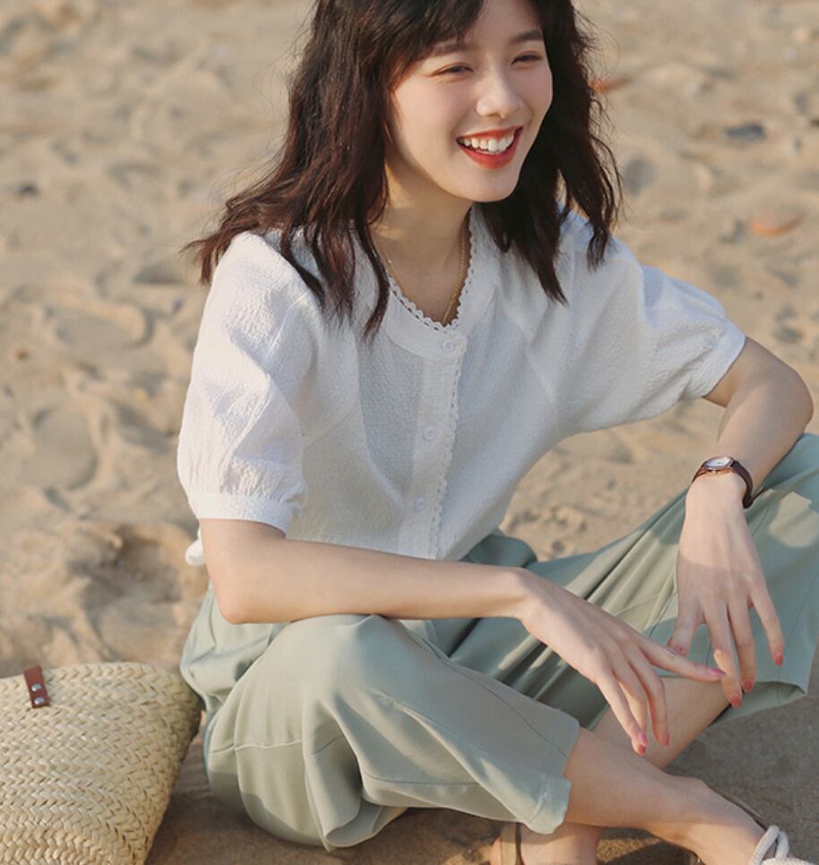 トップス デート シャツ ブラウス カットソー 袖あり 半袖 かわいい 大人可愛い きれいめ シンプル カジュアル 大人 上品 おしゃれ お洒落 主役級 存在感 夏 10代 20代 30代 レディース 女性用 OL 学生 デート お出かけ 公園デビュー 女子会 休日 イベント 旅行 着回し 普段使い ファッション コーデ 楽ちん モテ トレンド 流行 インスタ映え S M 白 ホワイト 紫 パープル