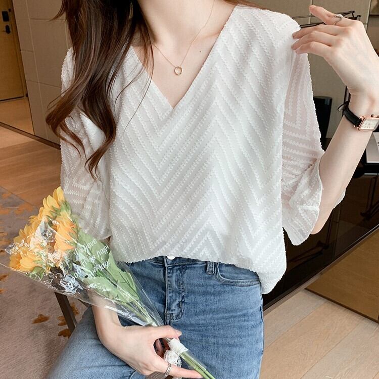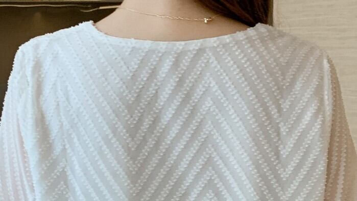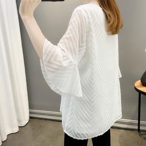トップス シャツ 白トップス 袖あり 5分袖 フレアスリーブ Vネック ストレート Iライン シフォン 透け感 薄手 かわいい 大人可愛い きれいめ シンプル 大人 上品 おしゃれ お洒落 大人可愛い 大人女子 ラブリー キュート ガーリー エレガント 存在感 とろみ感 抜け感 夏 10代 20代 30代 40代 50代 レディース 女性用 OL 通勤 学生 通学 デート お出かけ 女子会 休日 リゾート 旅行 着回し 普段使い モテ S M L XL 2XL 白 ホワイト