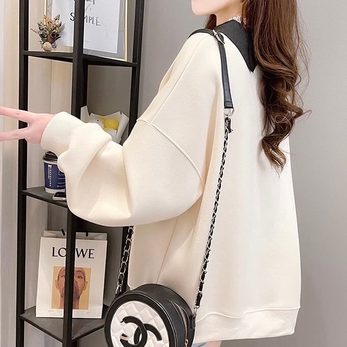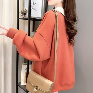 トップス プルオーバー パーカー トレーナー ビッグT レギュラー丈 袖あり 長袖 襟付き ポロカラー ワイド 刺繍 伸縮性 プルオーバー 綿 ポリエステル 薄手 カジュアル おしゃれ こなれ感 ラフ 抜け感 春 秋 20代 レディース 女性用 デート お出かけ 女子会 お泊まり アウトドア ショッピング 普段使い 韓国系 ファッション 体系カバー M L XL 大きいサイズ 大きめ ゆったり 色展開 イエロー オレンジ 春カラー 秋カラー