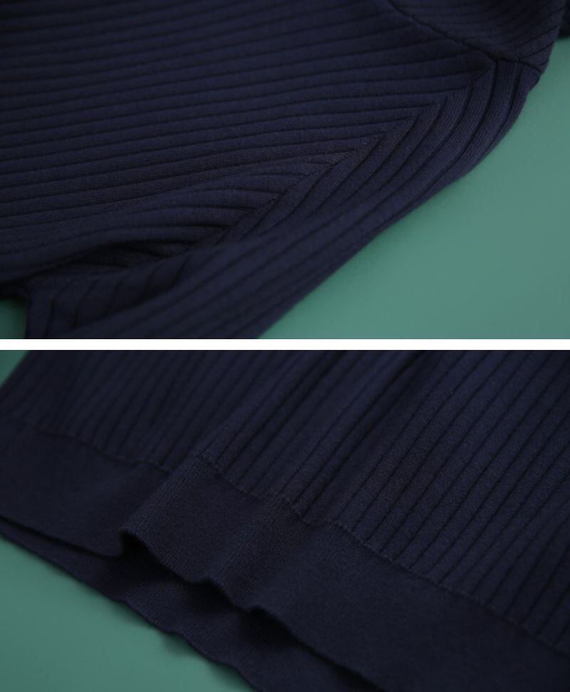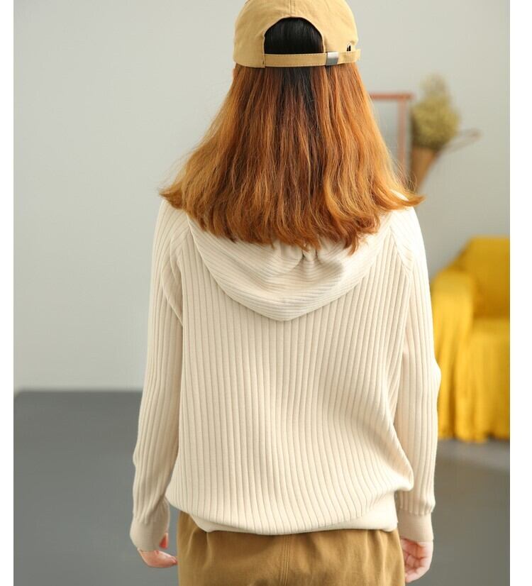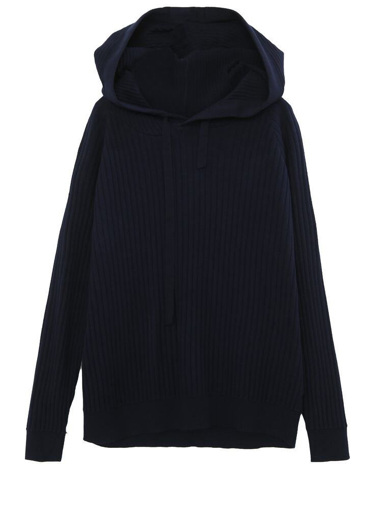 平たいフード紐がさりげなくおしゃれなフード付きのリブパーカー。