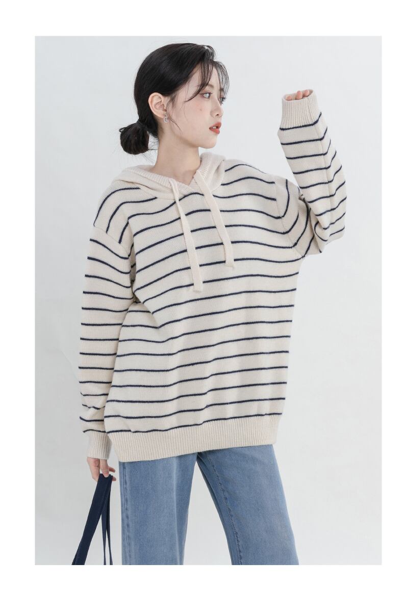 トップス ニットソー プルオーバー フーディー レギュラー丈 長袖 レギュラー袖 フード付き ニット ビスコース 大人可愛い カジュアル お洒落 こなれ感 ラフ キュート ルーズ とろみ感 抜け感 柄 ストライプ 春 秋 誕生日 10代 20代 30代 女性用 ママ OL 通勤 学生 通学 デート お出かけ 女子会 お泊まり 休日 アウトドア イベント 旅行 高原 ショッピング オールマッチ 着回し 重ね着 コーデ 楽ちん 暖かい モテ ギフト トレンド インスタ映え S M L ゆったり 白